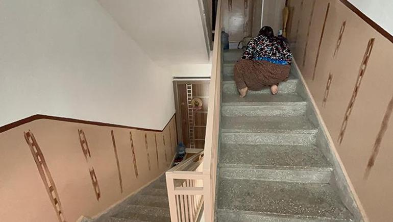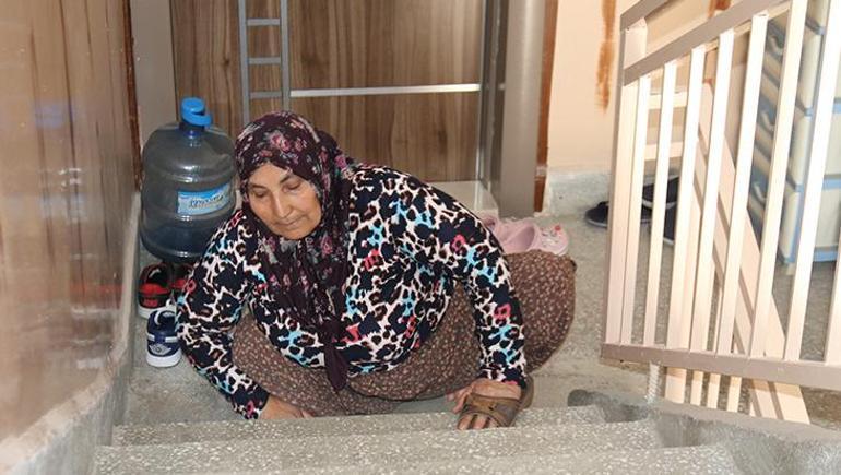 Akülü tekerlekli sandalyesini apartmanın giriş kısmına bırakan yaşlı kadın, çocuk gibi emekleyerek 2’inci kattaki dairesine 20 dakikada çıkabiliyor. Taşlar batmasın diye ellerine terlik giyen Avcı, kışın ise soğuk zeminde oldukça üşüdüğünü belirtti. İkinci kata çıkışını kolaylaştıracak bir engelli asansörü yapılmasını her şeyden çok istediğini belirten, elleri ve ayakları sürünmekten nasır tutan kadın yaşlı kadın, yetkililerden yardım bekliyor.
