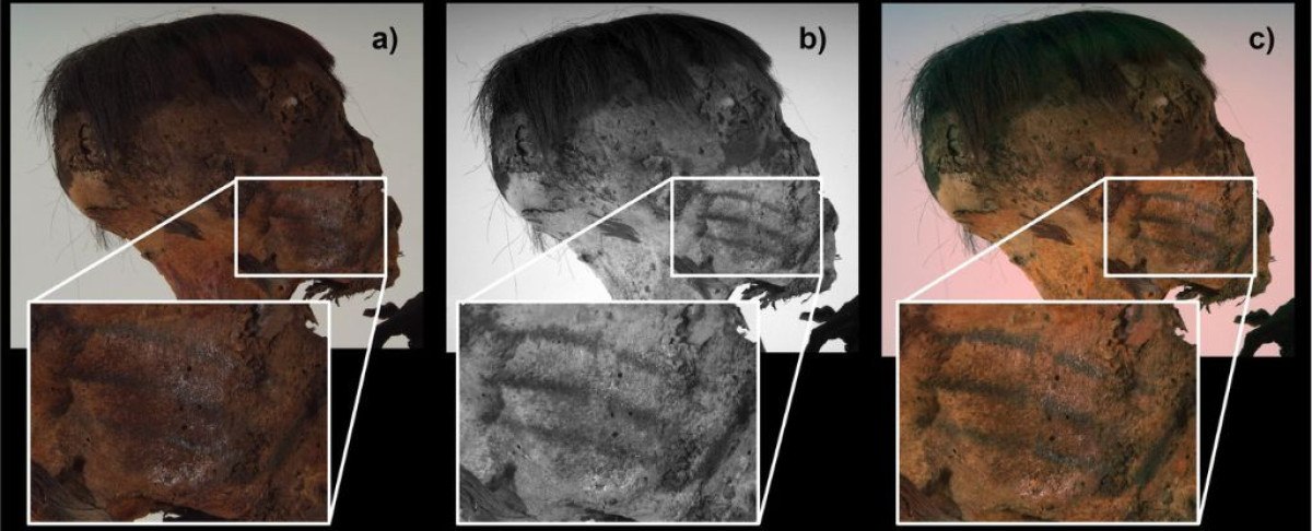 Ekip, mumyalama nedeniyle koyulaşan ten rengi yüzünden zor görülen dövmeleri tahribatsız görüntüleme teknikleriyle inceledi.