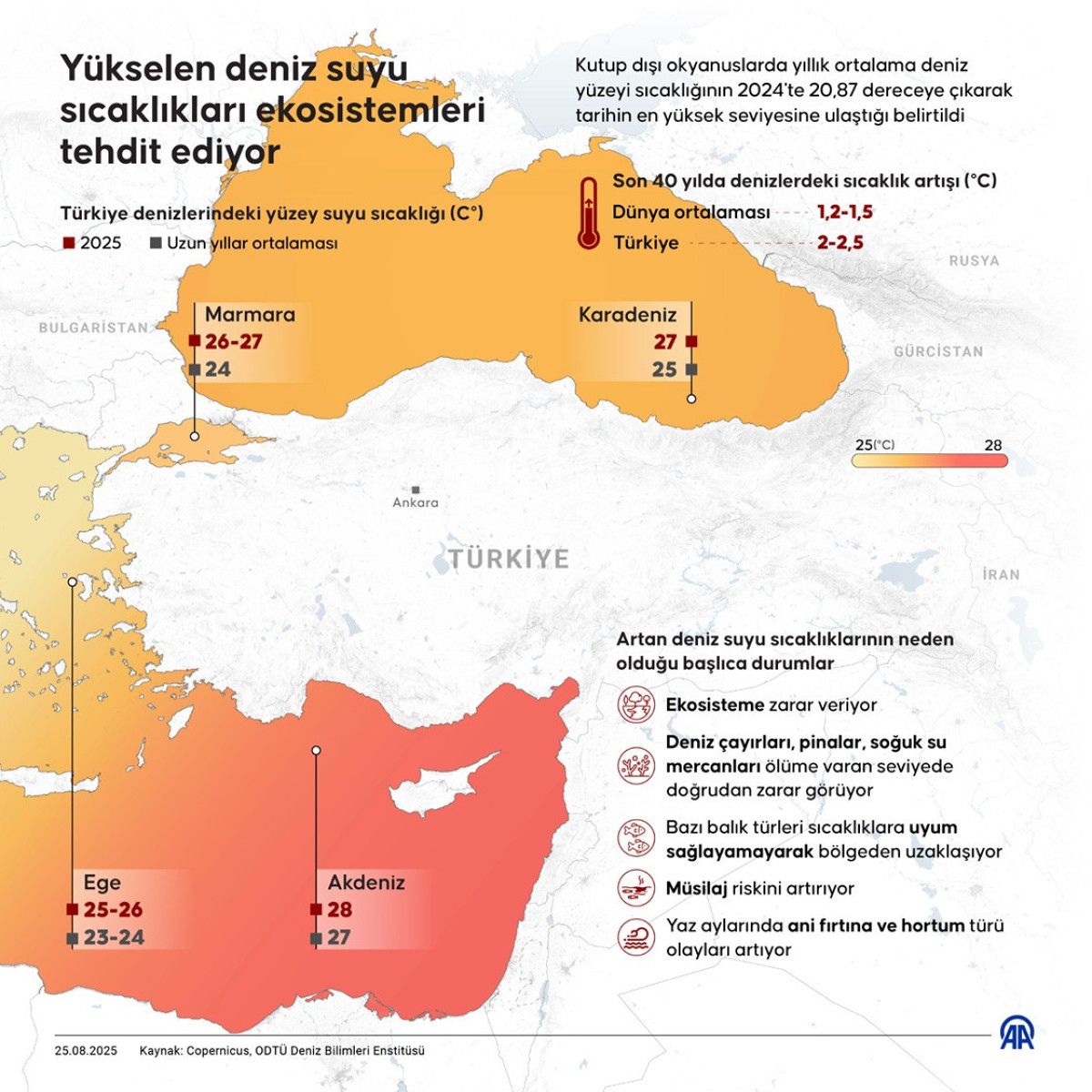 ODTÜ Deniz Bilimleri Enstitüsü Müdürü Prof. Dr. Barış Salihoğlu 2024’te kırılan sıcaklık rekorlarının ardından 2025’te de deniz suyu sıcaklıklarının benzer şekilde yüksek seviyelerde seyrettiğini söyledi.