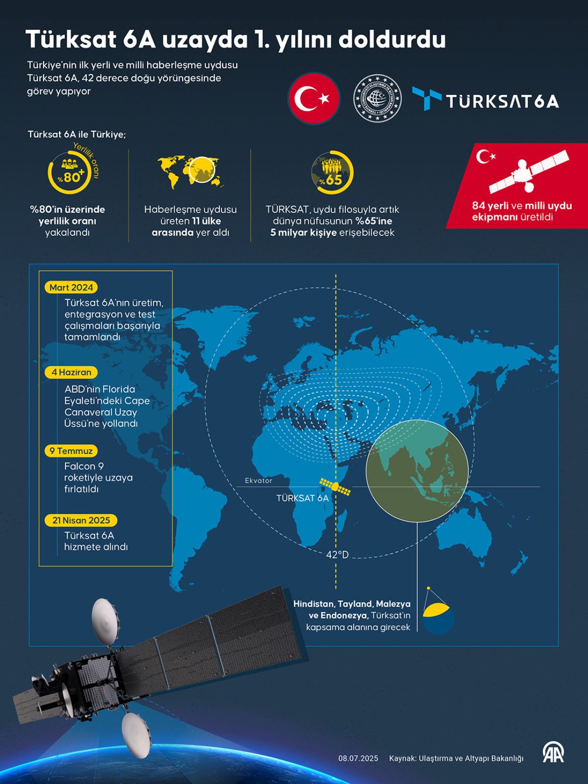Tüm fonksiyonları normal şekilde çalışan uydu, 21 Nisan 2025’te, Cumhurbaşkanı Recep Tayyip Erdoğan’ın katılımıyla gerçekleştirilen törenle, resmen hizmete alındı. 42 derece doğu yörüngesinde görev yapacak uydu, yüksek yerlilik oranı ve geniş kapsama alanıyla ülkemizin uzay ve haberleşme kapasitesine önemli katkı sağlıyor.