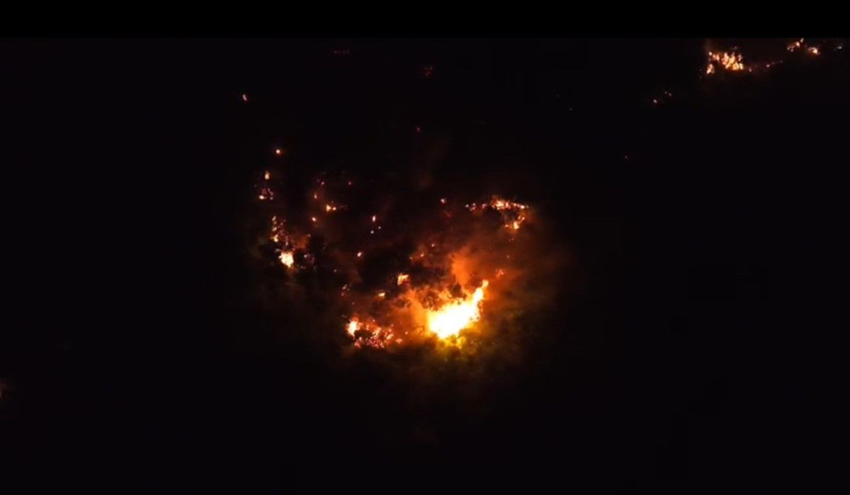 Öte yandan gece yangın havadan da görüntülendi.