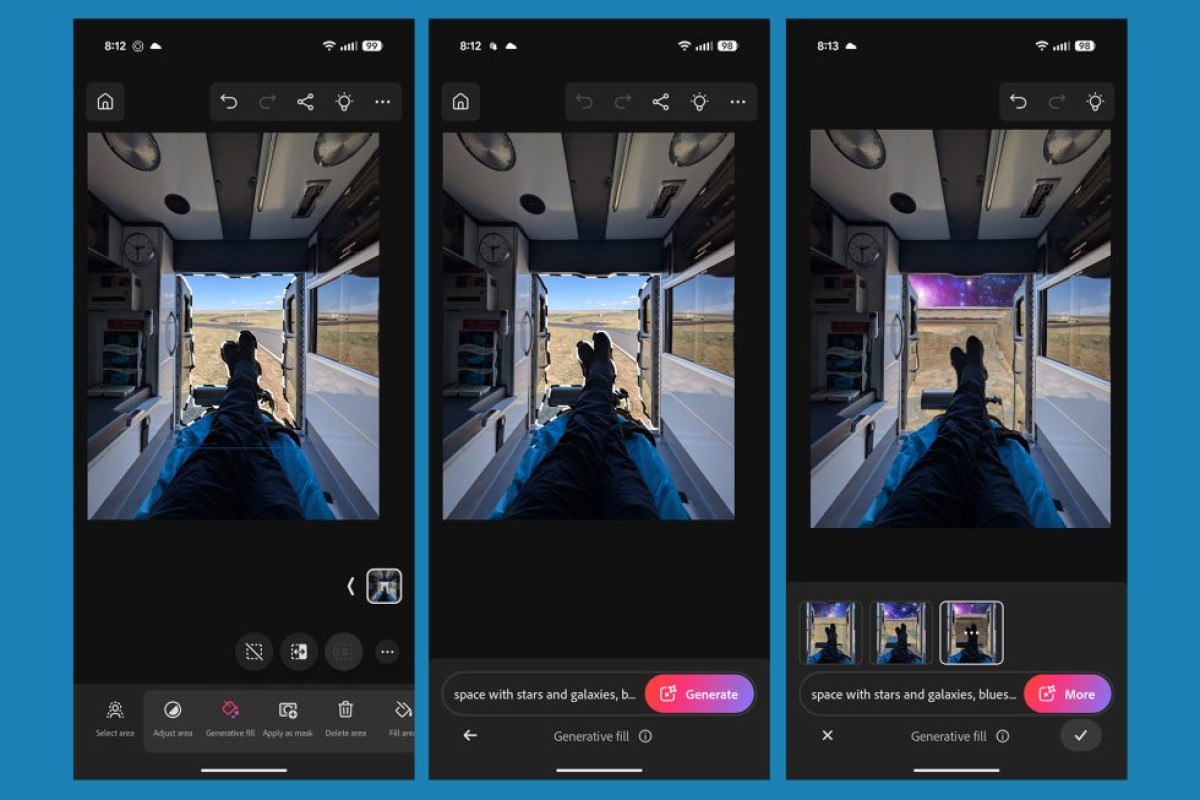 Yeni Photoshop Android uygulaması, Üretken Doldurma (Generative Fill) ve Üretken Genişletme (Generative Expand) gibi Firefly destekli üretken yapay zeka özelliklerini de içeriyor.