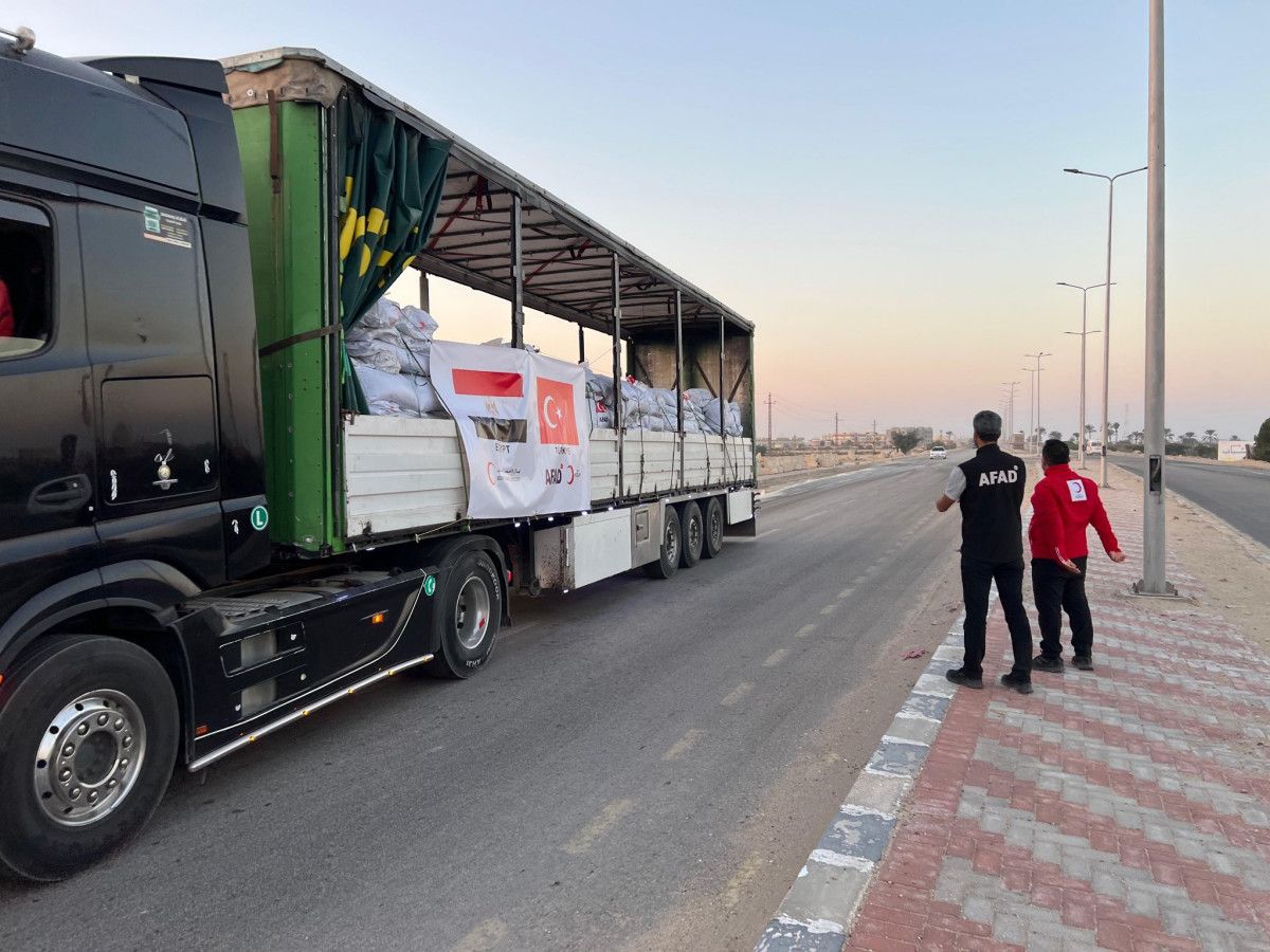 Bu çerçevede; 100 tır malzeme, AFAD koordinasyonu, Türk Kızılayı ve ülkemizdeki diğer STK’ların katkılarıyla gönderilen insani yardımların da bulunduğu sevkiyat kapsamında Mısır Kızılayı iş birliğiyle Mısır’ın El Ariş şehrinden Karem Ebu Salem sınır kapısına ulaştırılmıştır.