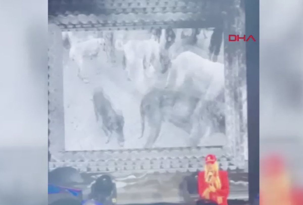 Kıraç’ın içinde ‘Bırakma beni, insanlar kötü. Bırakma beni korkuyorum’ sözlerinin yer aldığı ‘Yıkık’ isimli parçasını da arkasındaki barkovizyonda yer alan barınak görüntüleri eşliğinde seslendirdi.