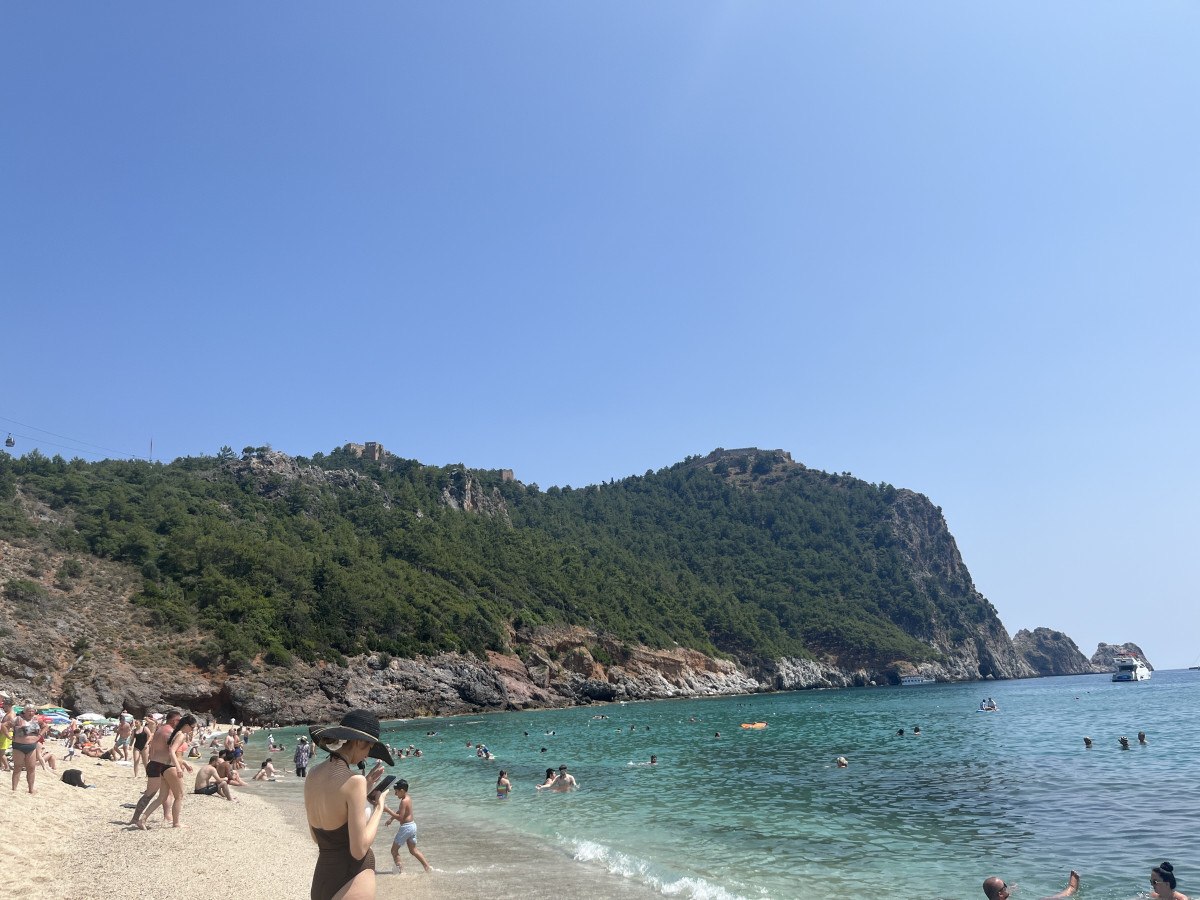 Antalya’nın Alanya ilçesinde hava sıcaklığının 30 dereceyi bulduğu haziran ayında bayram öncesi yerli ve yabancı turistler dünyaca ünlü Kleopatra Plajı’na akın etti.
