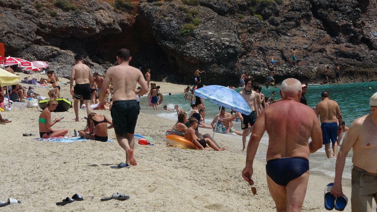 Sabahın erken saatlerinden itibaren plajı doldurmaya başlayan tatilciler, 24 dereceyi bulan deniz suyu sıcaklığından faydalanarak serinledi.