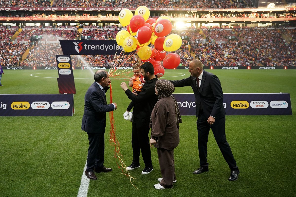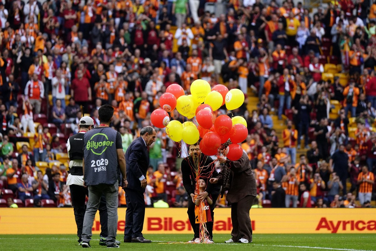 Başakşehir maçından önce de Galatasaray Başkanı Dursun Özbek, Ali Asaf ve ailesiyle birlikte sahanın ortasında sarı-kırmızılı balonları gökyüzüne bıraktı.