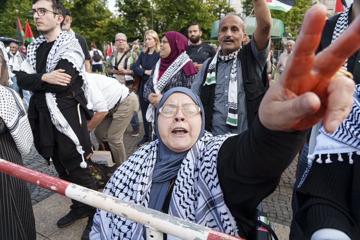 İsrail’in yaptığı soykırımı protesto etmek ve Gazze’de yaşanan açlık krizine dikkati çekmek için yüzlerce Filistin destekçisi Almanya’nın başkenti Berlin’in en işlek bölgelerinden olan Breitscheid Meydanı yakınlarında Kurfürstendamm Caddesi üzerinde toplandı.