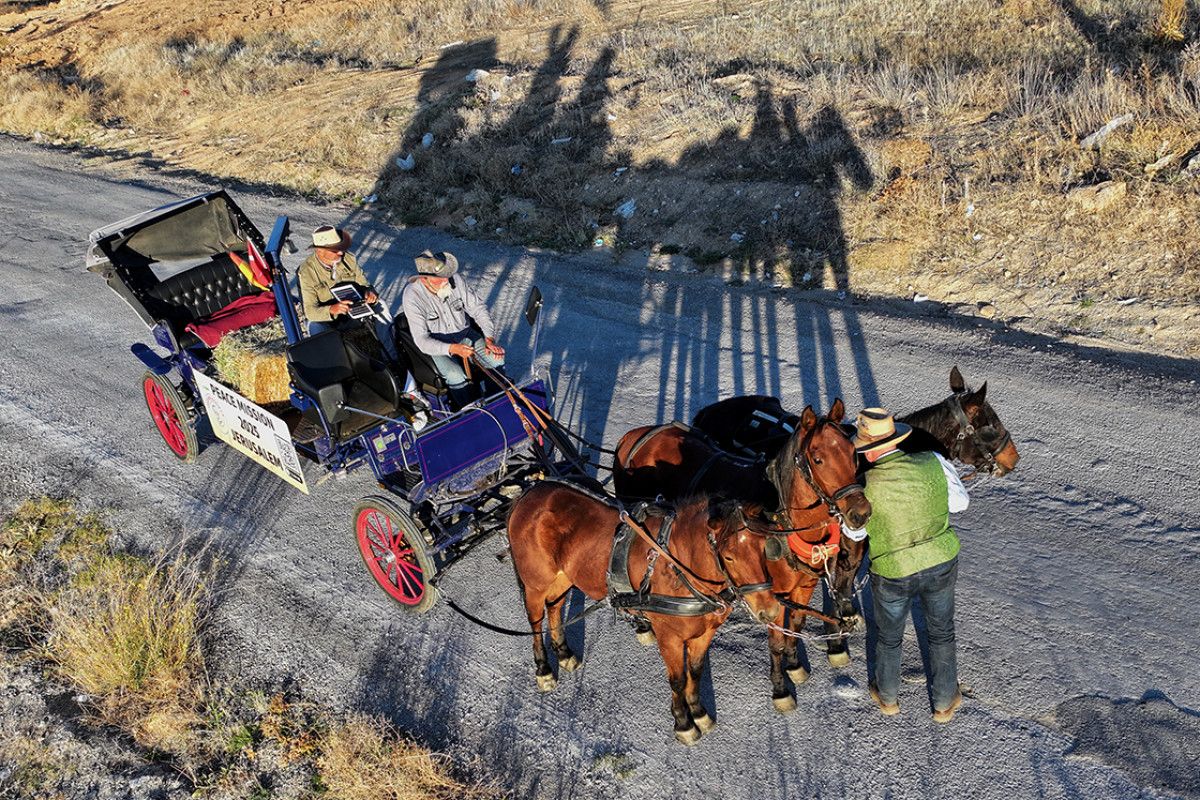 Faytonlarının üzerinde Almanca “Jagt dem Frieden nach mit jedermann” (Herkesle barışın peşinden gidin) yazılı tabelayla yol alan Heinz Bley, Friedrich Gerenche ve Azerbaycan asıllı Alman vatandaşı Abdulla Hacı, barış ve dostluk mesajını farklı kültürlerle paylaşmayı hedefliyor.