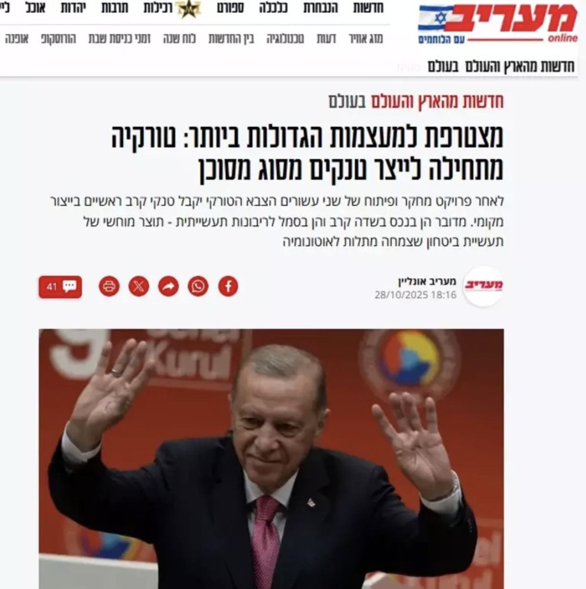 İsrail gazetesi Maariv, Altay tanklarının seri üretime geçmesini “Türkiye, süper güçler arasına giriyor: Ölümcül kapasiteye sahip yeni tankını üretmeye başlıyor.” başlıklı haberi ile duyurdu.