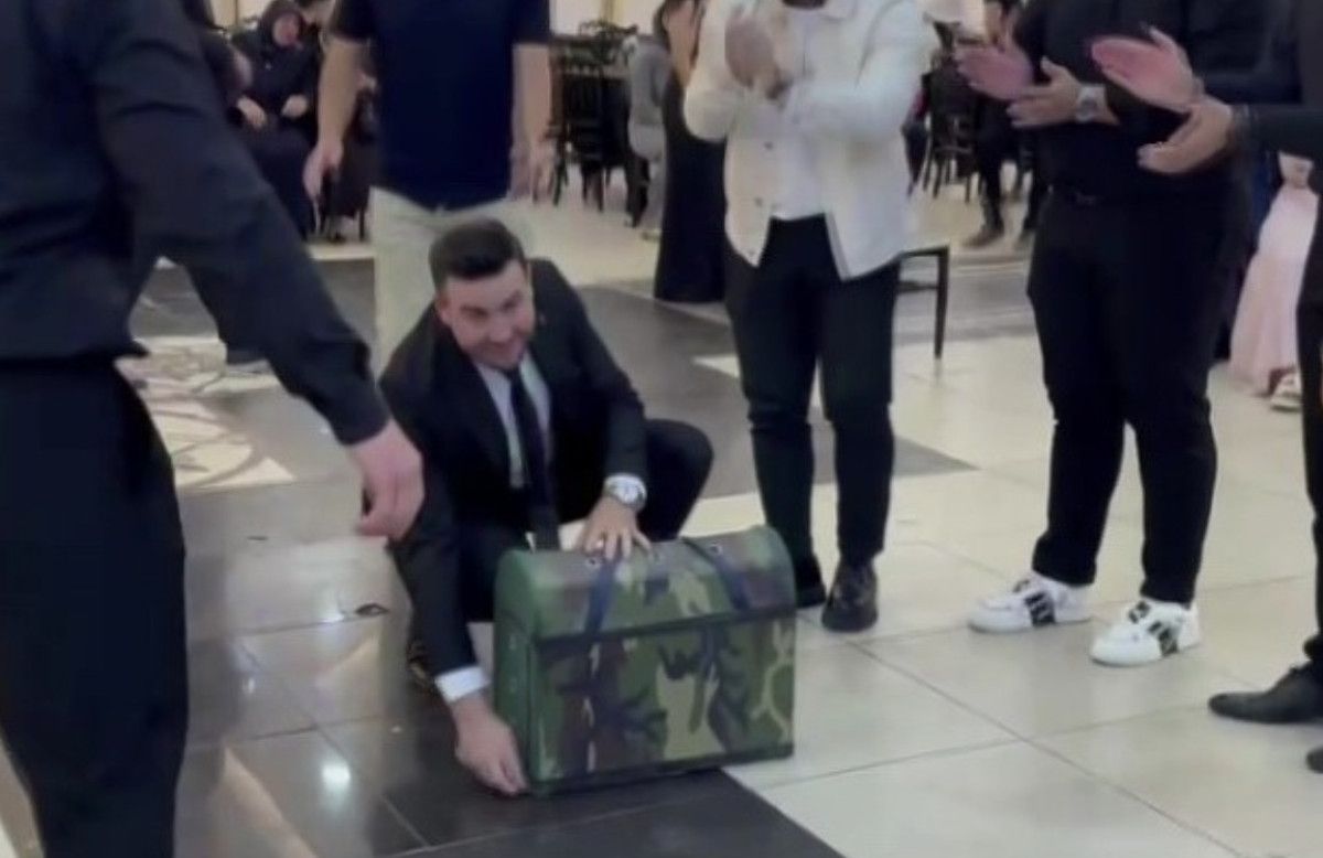 Amasya’nın Suluova ilçesinde Alaattin ile Gülay Karakullukçu çiftinin düğünlerinde damadın arkadaşlarından Burhan İnan, salonun oyun pistine bir çantayla geldi.