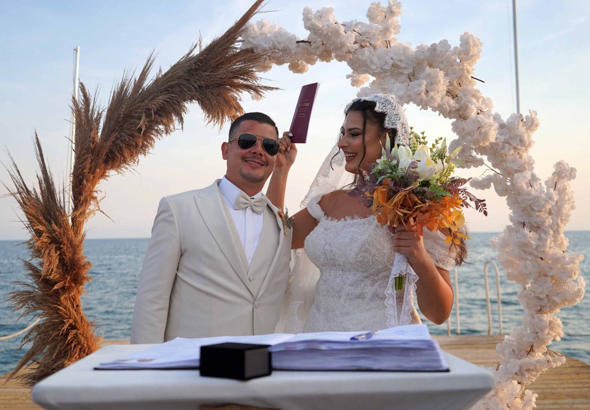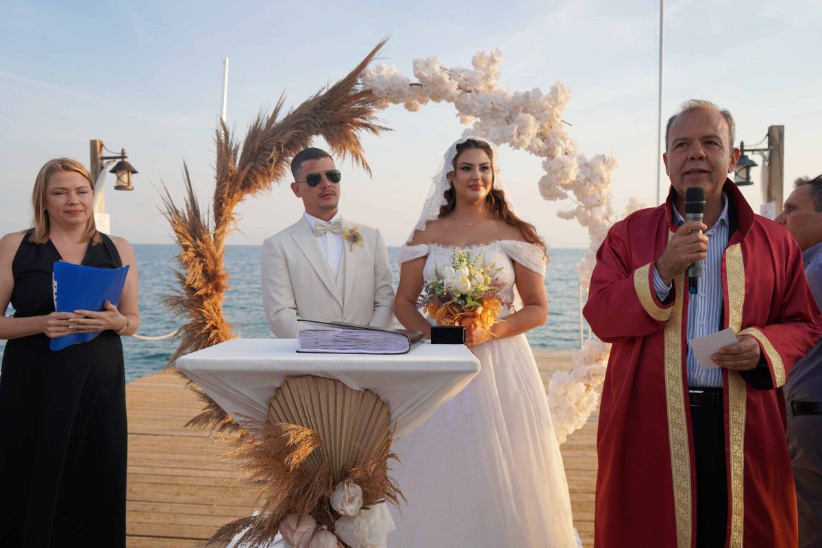 Deniz kenarındaki iskelede düzenlenen törene çiftin aileleri ve yakın arkadaşları katıldı. Nikahın ardından eğlenceye geçen çift, ilk danslarını gerçekleştirdikten sonra Türk düğünlerinin vazgeçilmezi ‘Erik Dalı’ eşliğinde sahneye çıktı.
