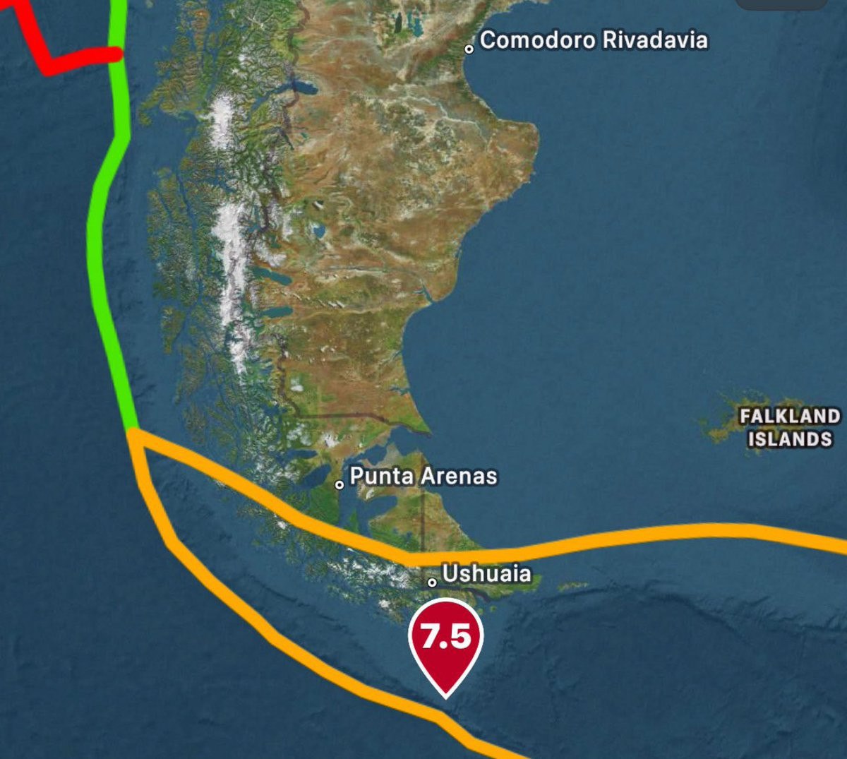 Bu depremin hemen ardından 7.1 büyüklüğünde ikinci bir deprem kaydedildi. Her iki depremin de merkez üssü Arjantin’in Ushuaia kentine yaklaşık 200 kilometre mesafede, deniz tabanında yer aldı.