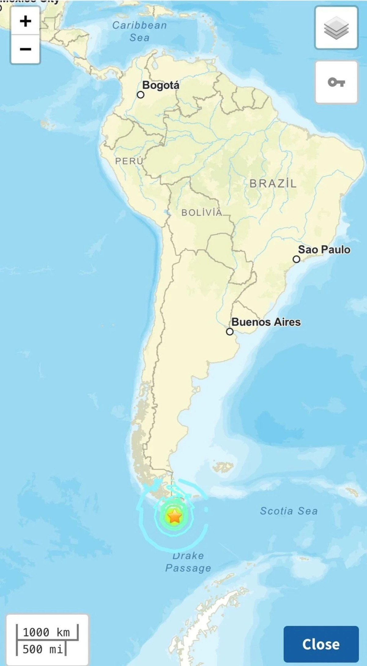 ABD Tsunami Uyarı Merkezleri, Drake Geçidi’nde meydana gelen depremin merkez üssünden 300 kilometre uzaklıkta bu dalgaların oluşabileceğini söyledi.