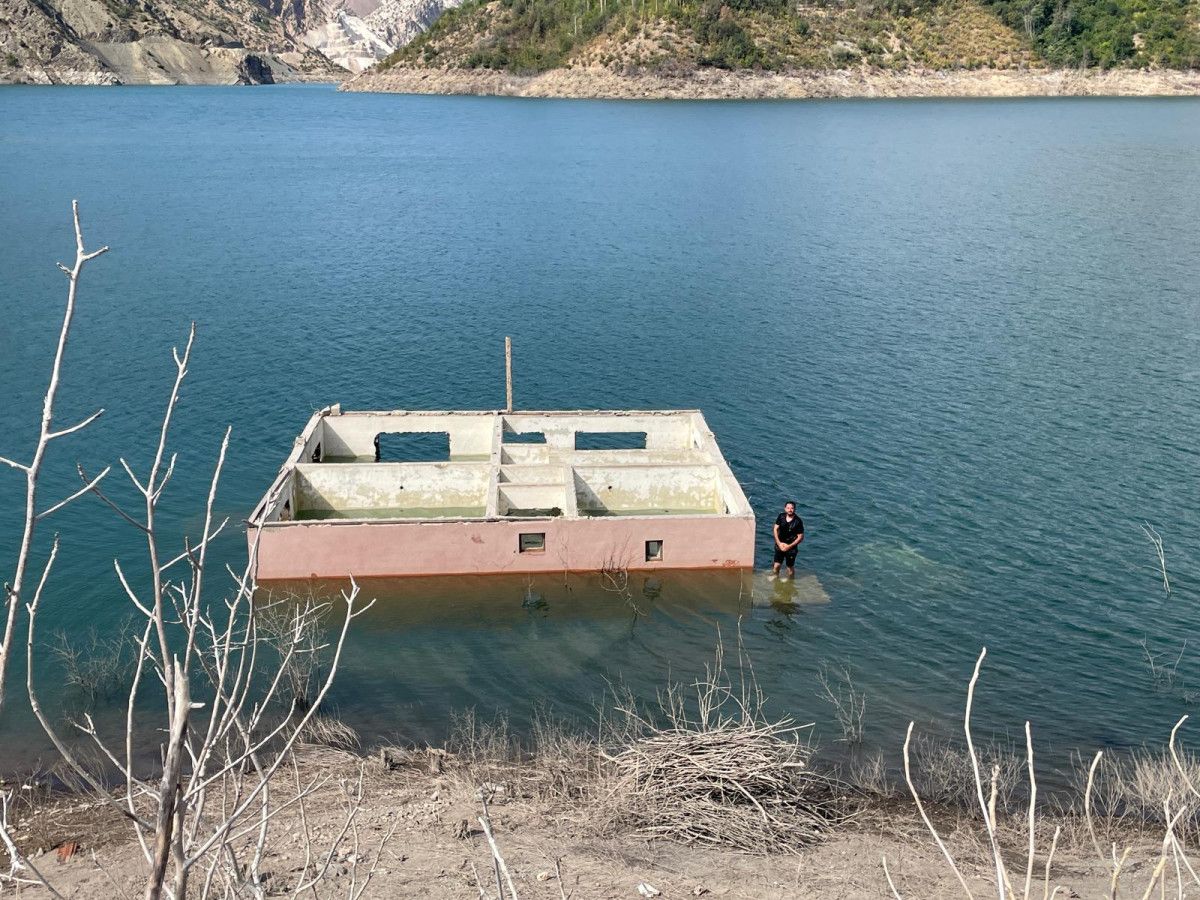 Barajın çekildiği noktalara dalışlar yapan İnce, sulara gömülen evlerin içinde odadan odaya yüzerek geçiyor.