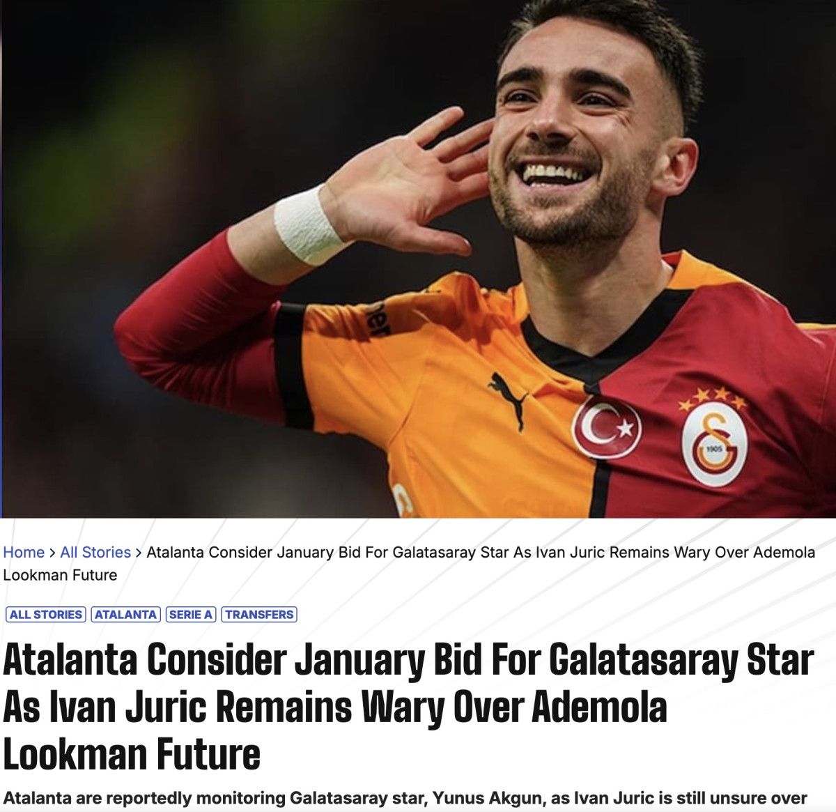 İtalya Serie A ekibi Atalanta, Süper Lig devi Galatasaray’ın yıldız oyuncusu Yunus Akgün’ü gözüne kestirdi.