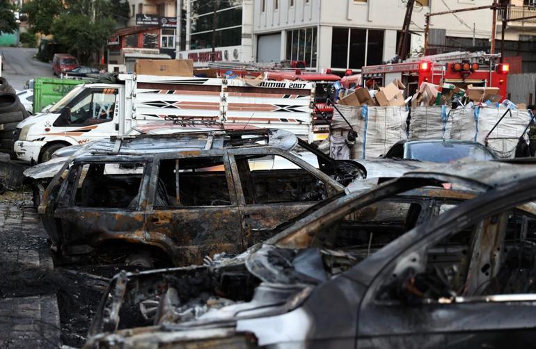 Kısa sürede büyüyen alevler, sanayi sitesinde tamir için bekleyen diğer otomobiller ile bir otelin açık otoparkındaki araçlara da sıçradı.