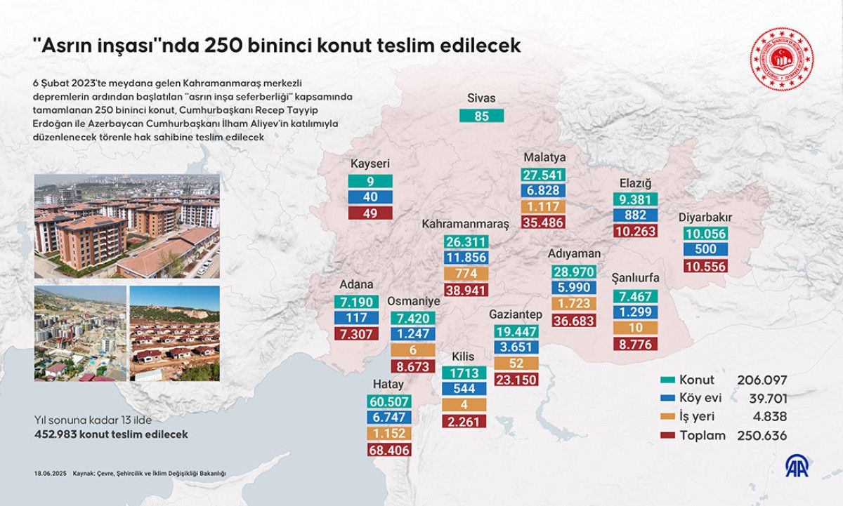 Konut ve işyerlerinin yüzde 100’ünün yapımı başladı. 452 bin 983 konut ve işyeri yıl sonunda teslim edilecek.