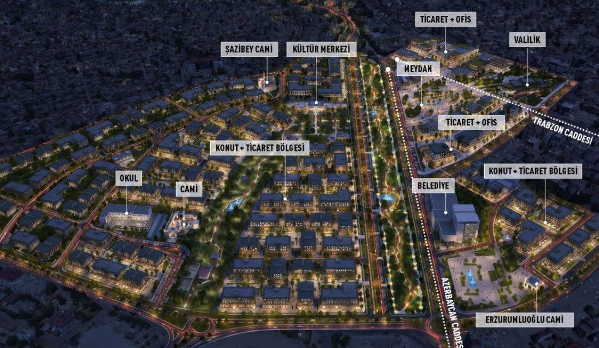 Azerbaycan Mahallesi olarak isimlendirilen 320 dönümlük alanda inşa edilen projede bin 323 konut ve 799 işyeri olmak üzere toplam 2 bin 122 bağımsız bölüm bulunuyor.