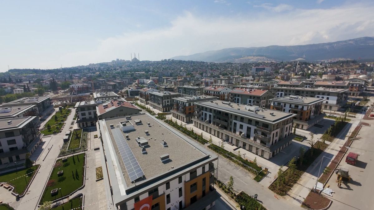 Asrın felaketinde Kahramanmaraş’ta en çok can kaybının yaşandığı noktalardan biri olan Haydar Aliyev Caddesi ile Azerbaycan Bulvarı’nın kesiştiği alanda kurulan Azerbaycan Mahallesi’ndeki konut ve iş yerlerinin inşaatlarının büyük bir bölümü tamamlandı.