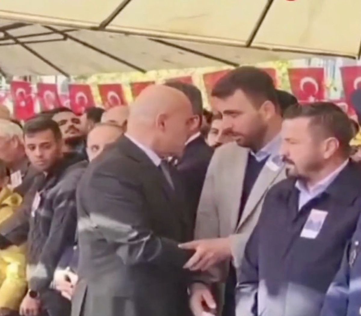 İYİ Parti Balıkesir Milletvekili Turhan Çömez‘in, cenaze namazının kılınacağı sırada en ön safta yer alma gayreti kameralarca kaydedildi. Tüm ülkenin şehit ve yakınlarının acısına odaklandığı bu hüzünlü günde, Çömez’in kameralara en ön safta görüntü vermek için adeta bir mücadele içerisine girmesi tepkilere yol açtı.