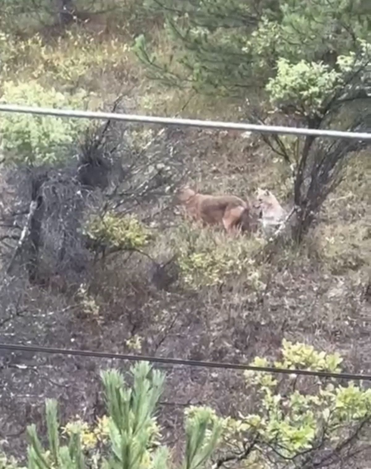 Yiyecek aramak amacıyla kent merkezine indiği değerlendirilen kurtlar, bir süre bir ağacın çevresinde dolaştıktan sonra ormanlık alana yönelerek gözden kayboldu.