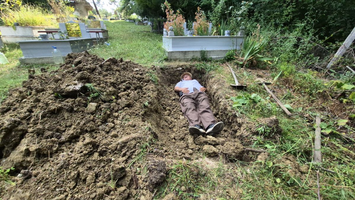Üst tarafta defnedilen bir kişinin mezarına gelenler, beni mezar kazarken gördüklerinde ne yaptığımı soruyorlardı. Mezarımı kazdığımı söylüyordum. İnanmayınca ise, ‘Annemi, babamı çok özledim, onların yanına gidiyorum’ diye söylerdim. Mezarımın üst beton kapaklarını yerleştirmek için bir arkadaşımı telefonla arayıp yardım istedim. Arkadaşım mezarımı kazdığıma inanmadı.