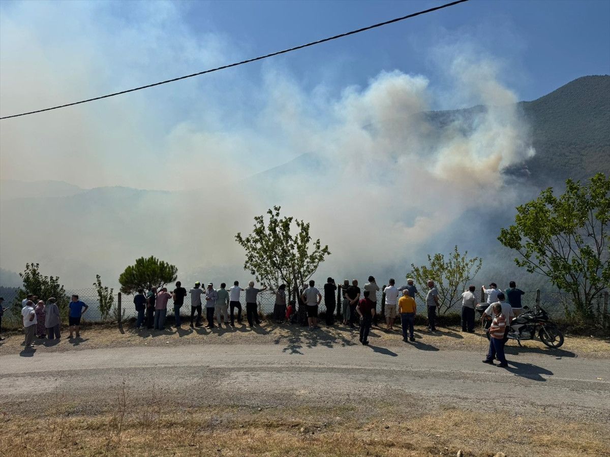Alevler ve duman geniş alanda etkili olurken, yangının söndürülmesi için havadan ve karadan çalışma yürütülüyor.