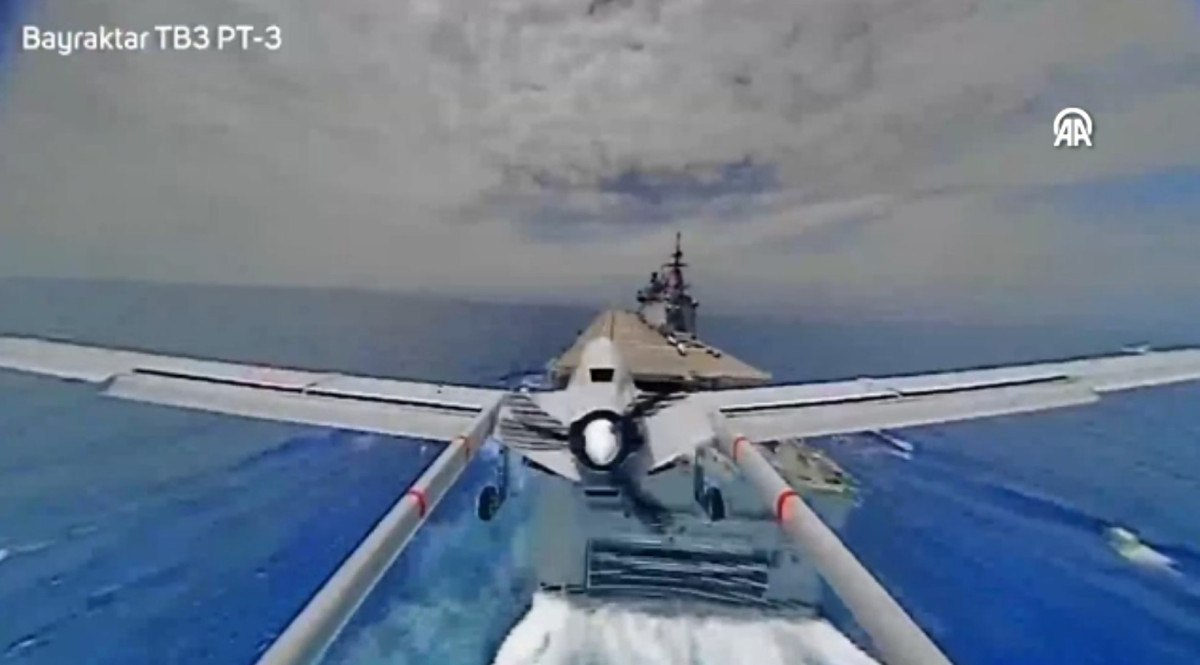 9 Mayıs’ta Keşan’dan kalkış yapan PT-3 ve PT-4 numaralı Bayraktar TB3’ler, TCG Anadolu’ya intikal ederek burada konuşlanmıştı. Gemi üzerinde mühimmat yükleme testlerinden başarıyla geçen SİHA’lar, Türkiye’nin ilk SİHA taşıyıcı savaş gemisinde aktif görev almaya başladı.
