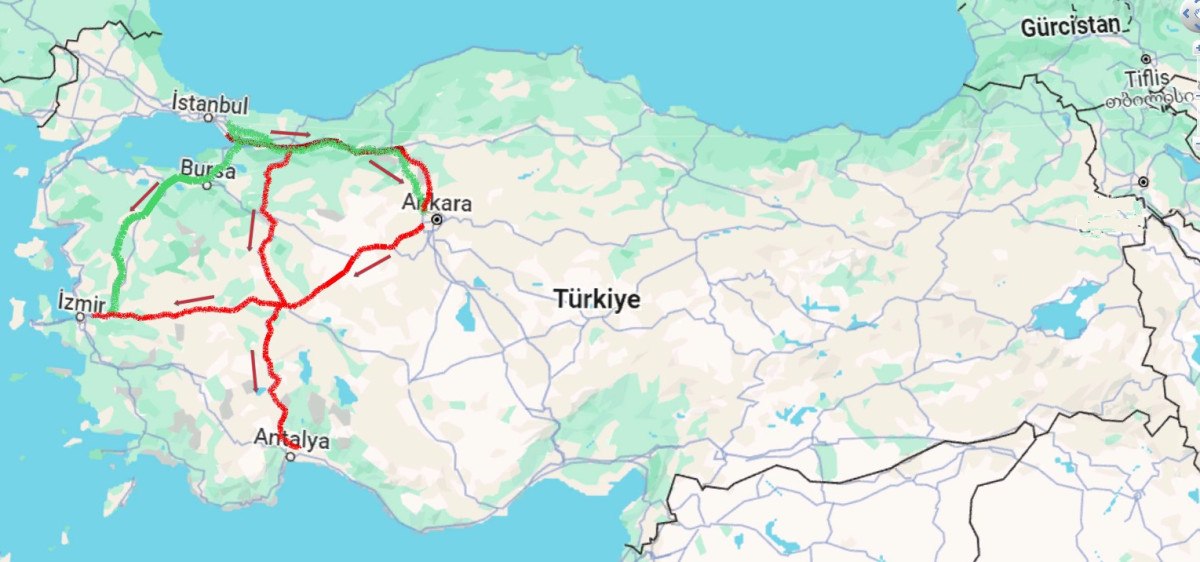 • D-200, D-260 ve D300 karayolunda, Ankara, Eskişehir, Afyonkarahisar, Uşak, Manisa ili katılımlarından itibaren,