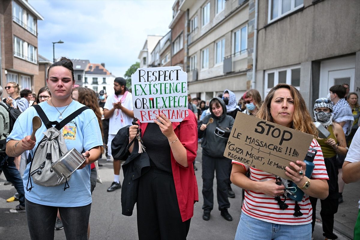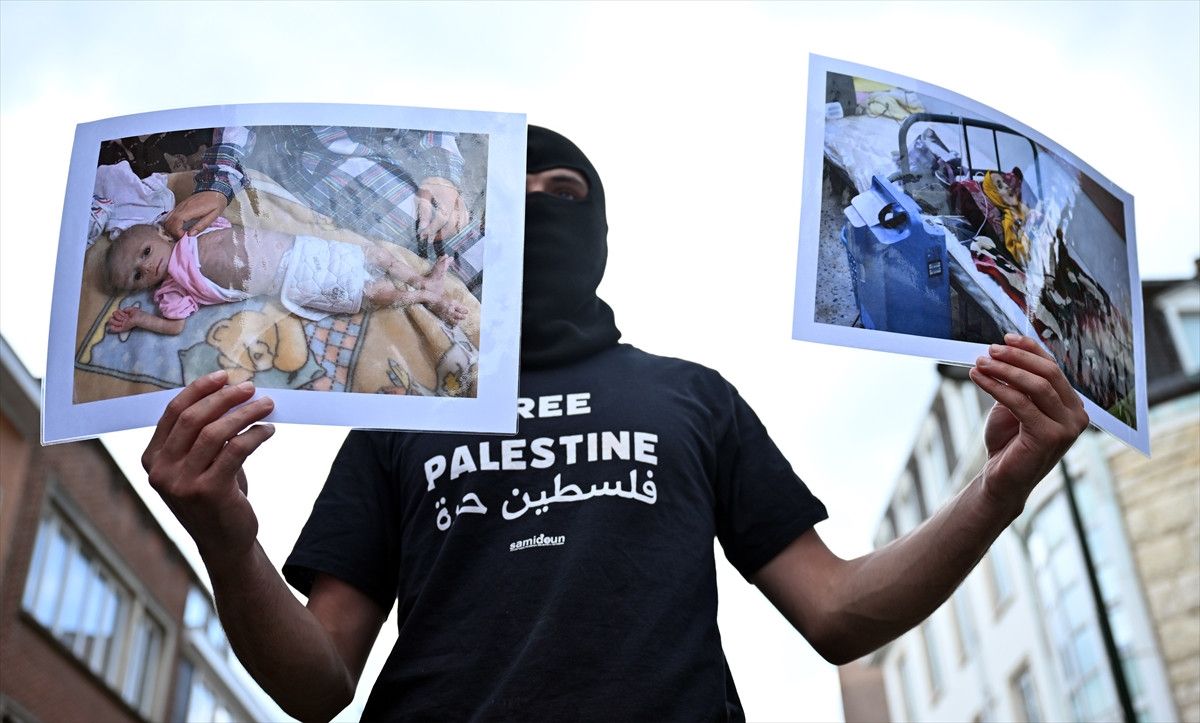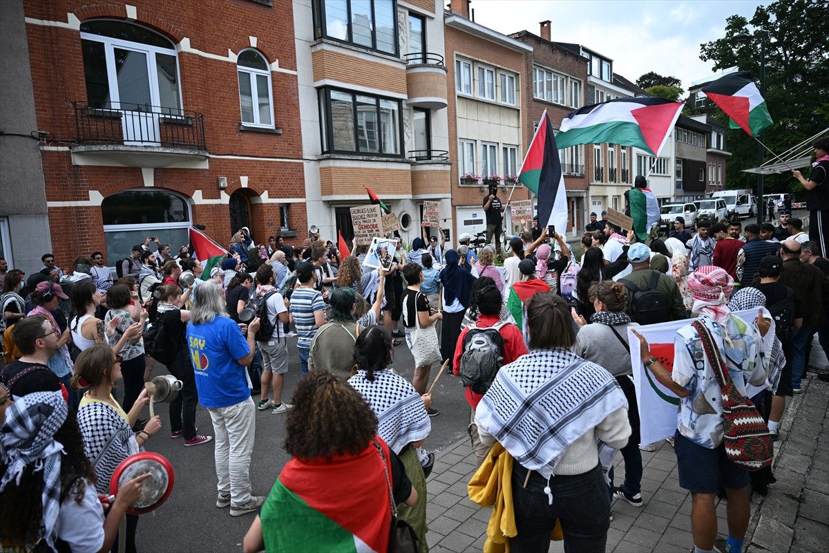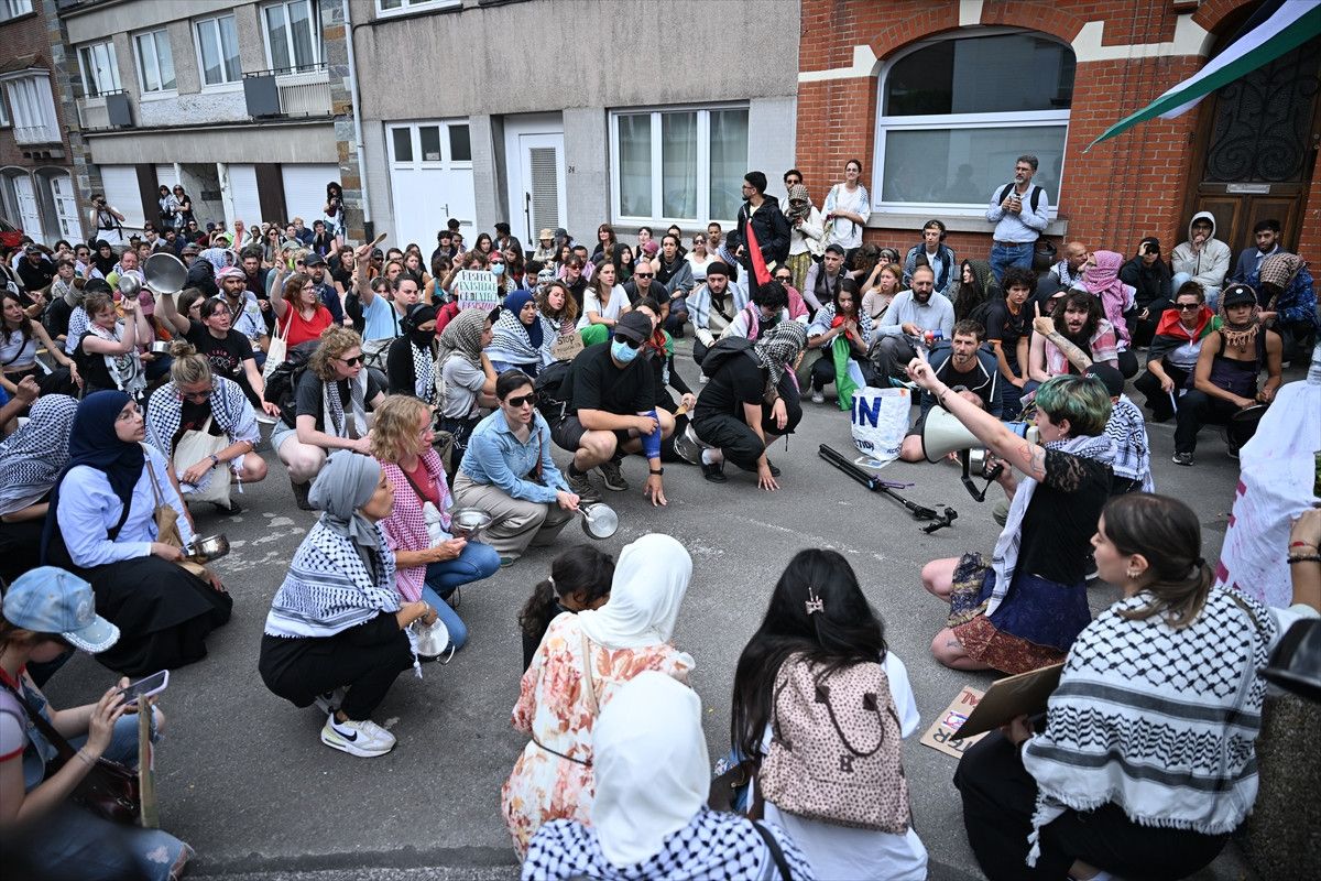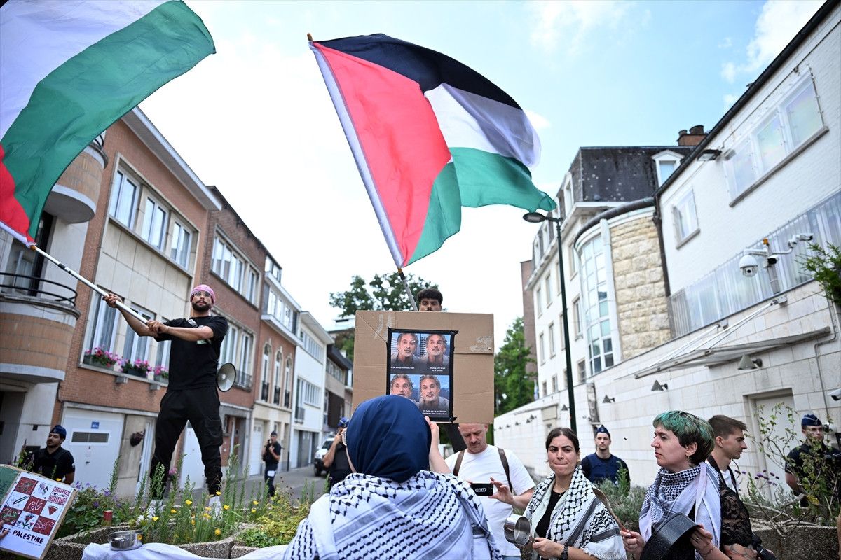 Bu kapsamda, Belçika’da sivil toplum kuruluşlarının çağrısı üzerine Filistin destekçileri, İsrail’in Brüksel Büyükelçiliği önünde yerel saatle 14.00’te bir araya geldi.