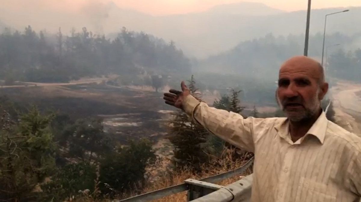 Öte yandan, bir köylünün zeytinliği yangında küle döndü. O anları anlatan köylü, “Yukarıda 10 dönüm zeytinliğim, yandı. İçinde bahçe evim var. orada yaşıyorum. Başka evim yok. Köyden buraya geldim. Aşağıda hayvanlarım vardı, son anda kurtardım. 25 tane keçi, koyunum vardı. Onlar kurtuldu, arkadaş sahiplenip götürdü.” dedi.
