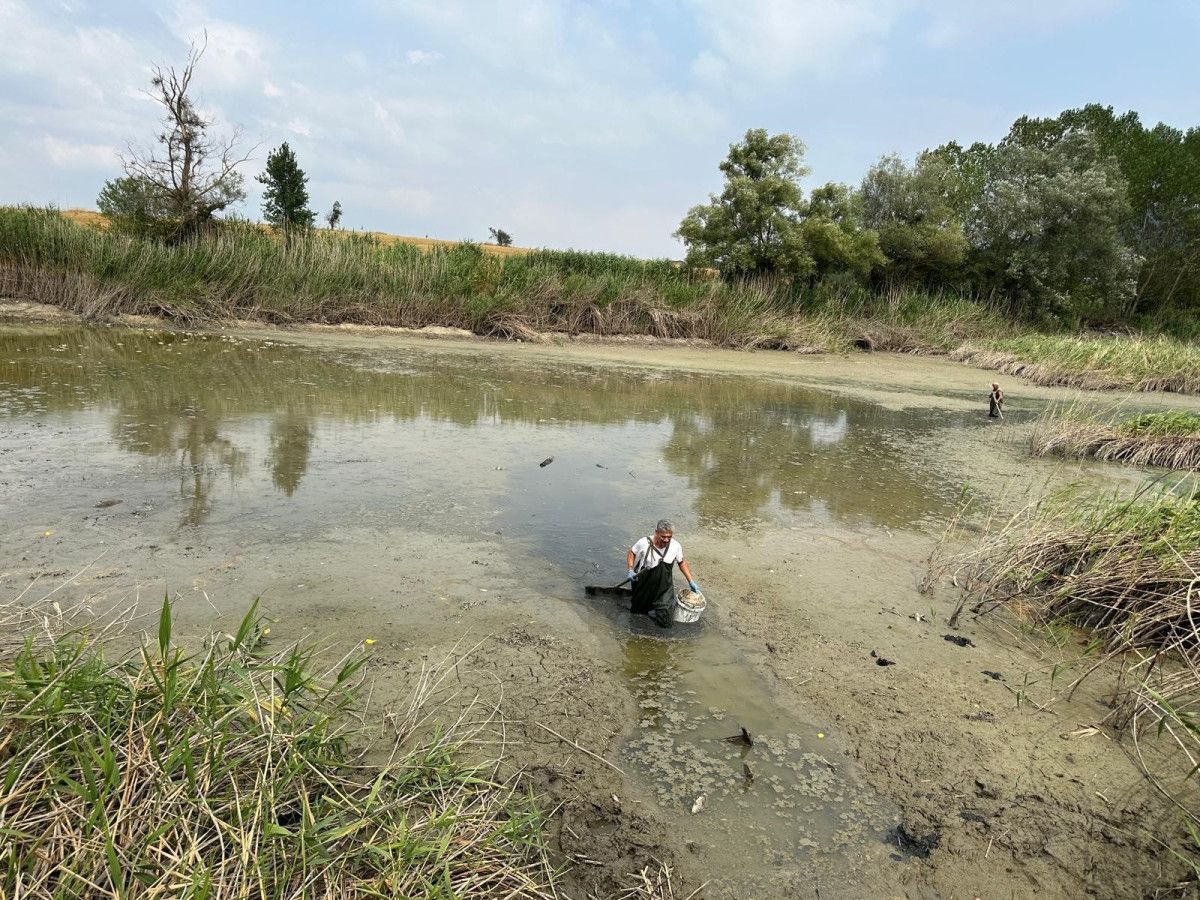 Gölette yaşam mücadelesi veren balıklar hafta sonu 2 günlük yapılan çalışmayla kurtarıldı.