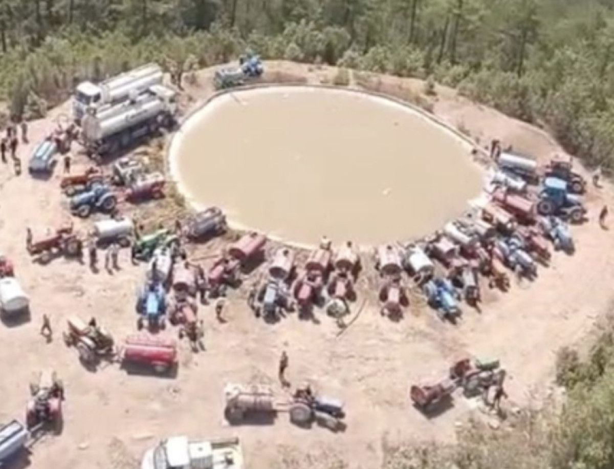 Harmancık’ta onlarca vatandaş traktörlerinin arkalarına bağladıkları su dolu tankerlerle, helikopterler için yangın söndürme havuzuna su taşıdı.