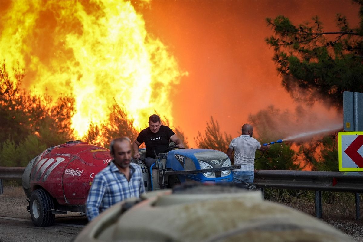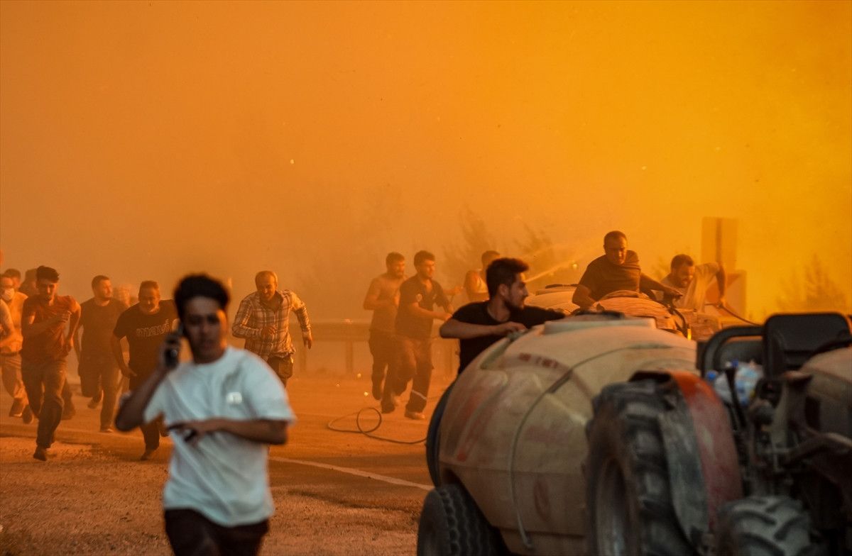 Bu sırada vatandaşlar rüzgarın etkisiyle büyüyerek üzerlerine doğru yönelen alevlerden kaçtı.