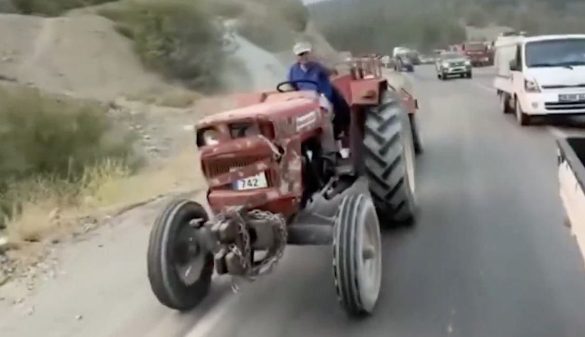 Traktörünün lastiklerinin patlamasına rağmen, mücadelesinde vazgeçmeyen vatandaşın o görüntüleri, sosyal medyada takdir topladı.