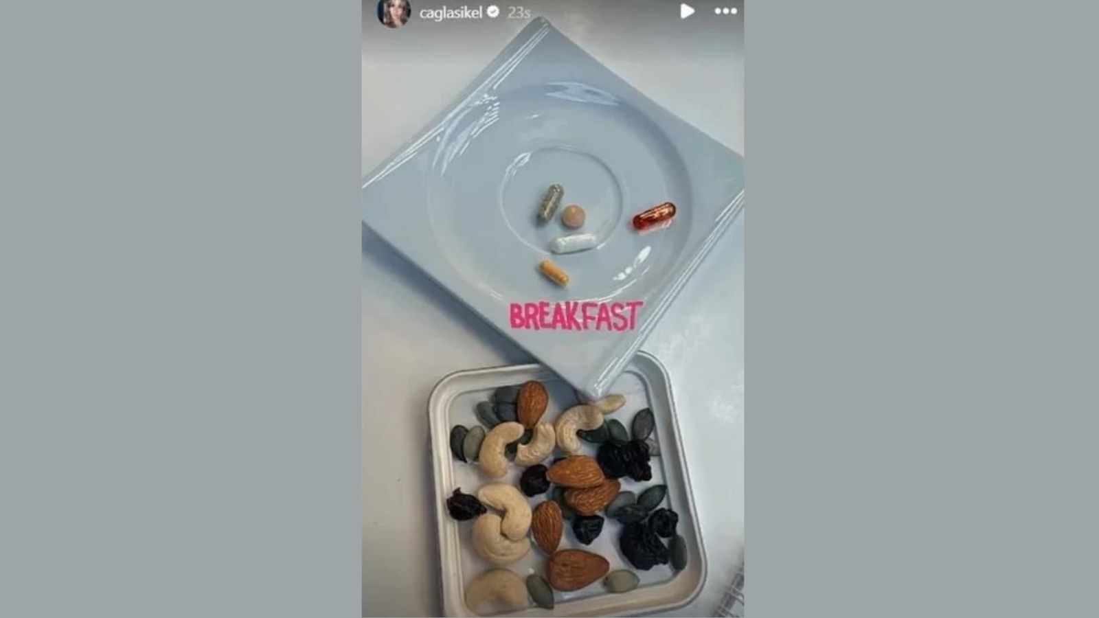 Çağla Şıkel, Instagram’da “kahvaltı” notuyla paylaştığı fotoğrafıyla adeta olay yarattı. Tabağında birkaç kuruyemiş ve sağlıklı takviyelerden oluşan bu sade sofra, görenleri hayrete düşürdü. Her zaman kusursuz fiziğiyle dikkat çeken Şıkel’in nasıl bu kadar fit kaldığı, bu minnacık kahvaltıyla ortaya çıkmış oldu. Sosyal medya kullanıcıları ise bu görüntüyü görünce adeta çıldırdı!