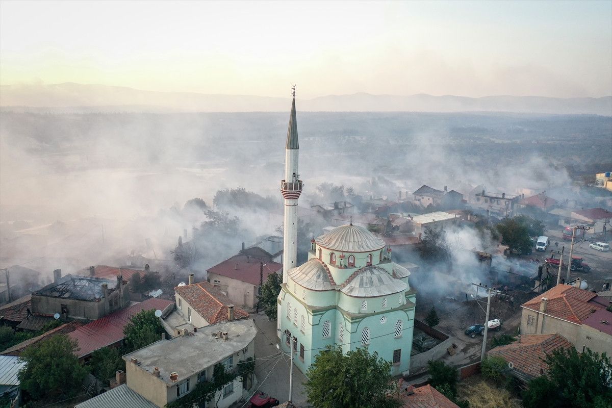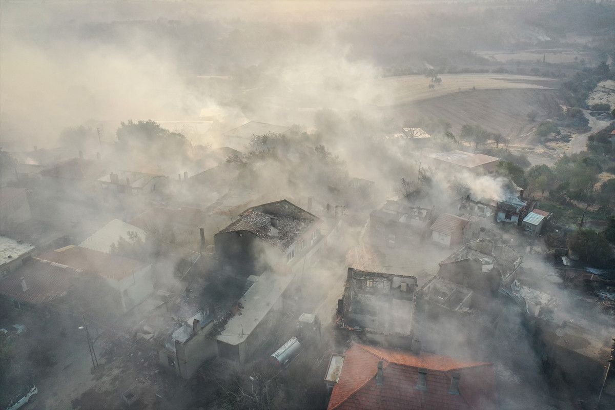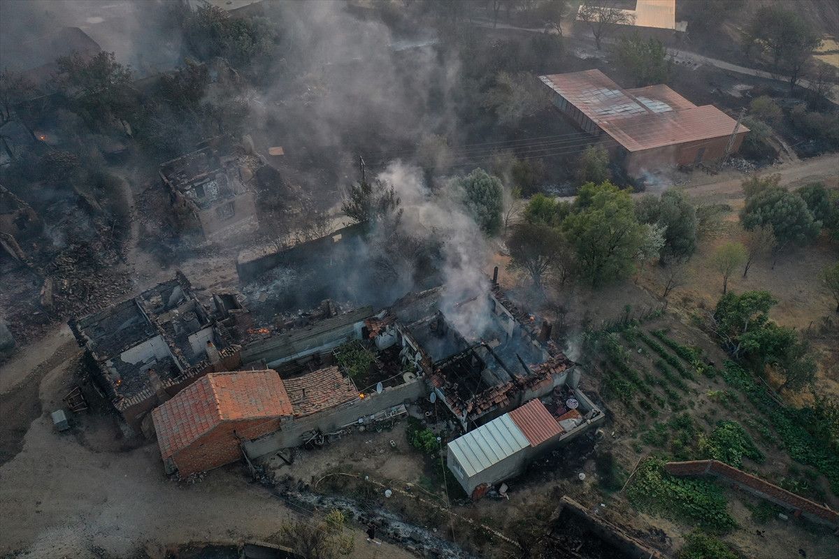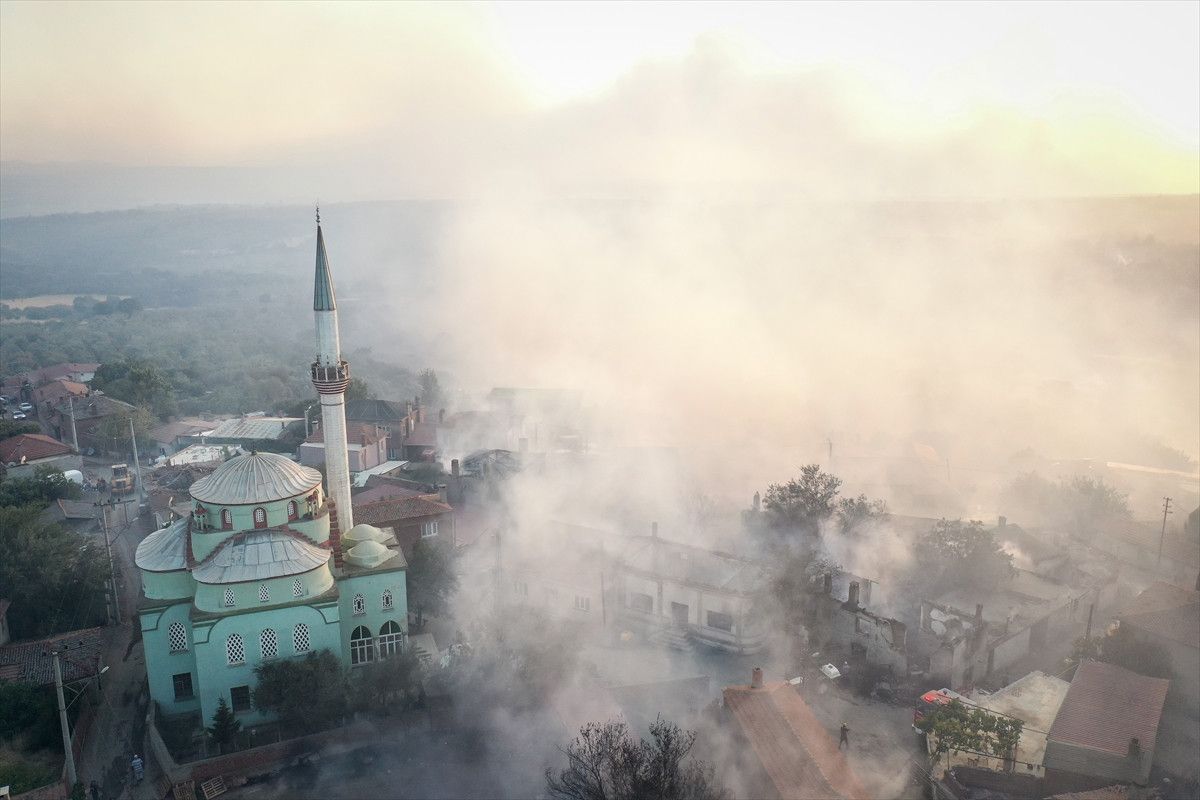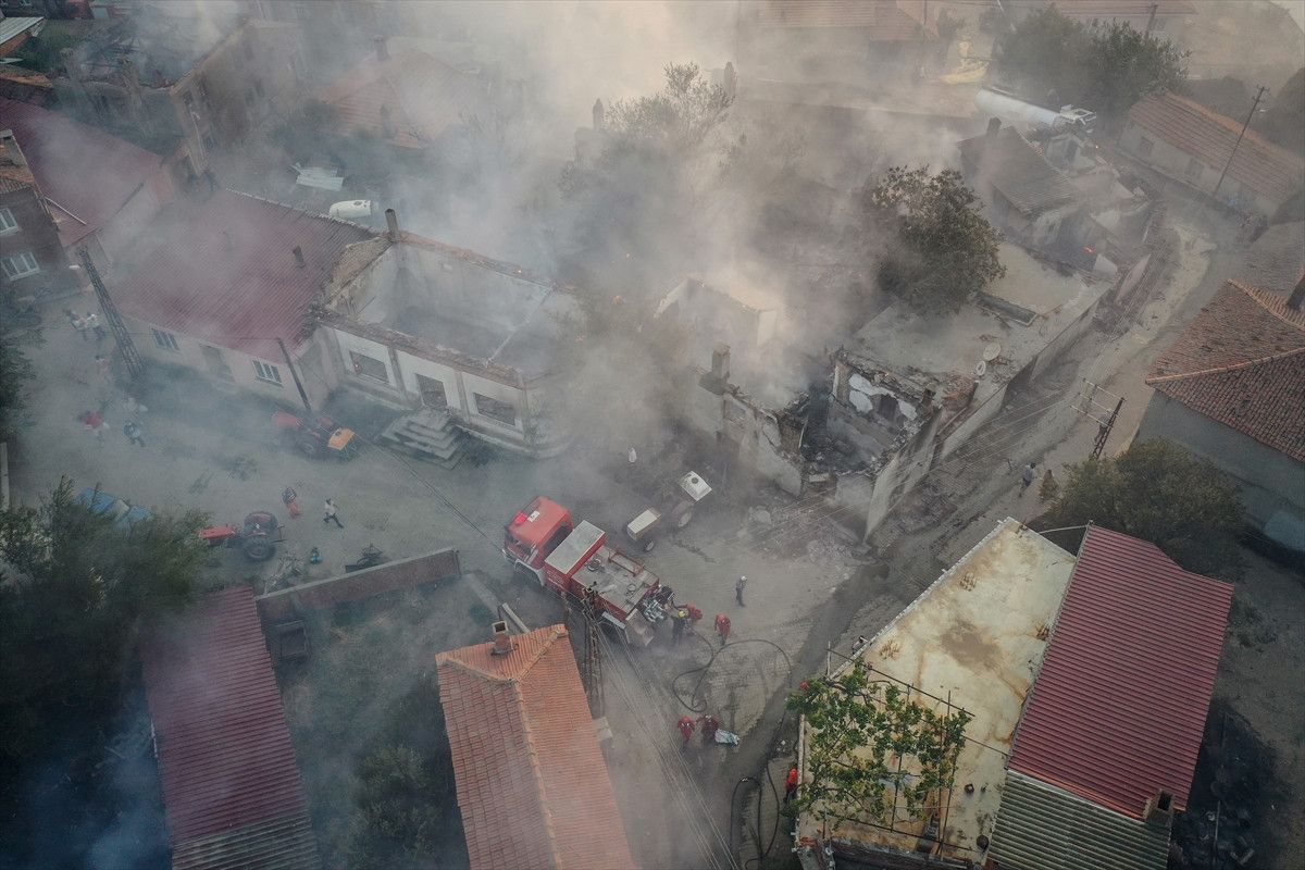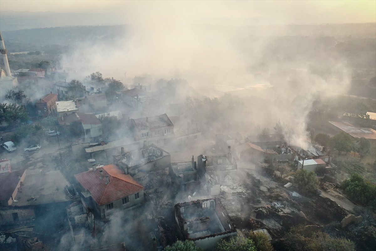 Çanakkale’nin Bayramiç ilçesinde çıkan orman yangını söndürme çalışmaları sürerken, boşaltılan üç köyden gelen görüntüler tahribatın boyutlarını gözler önüne seriyor.