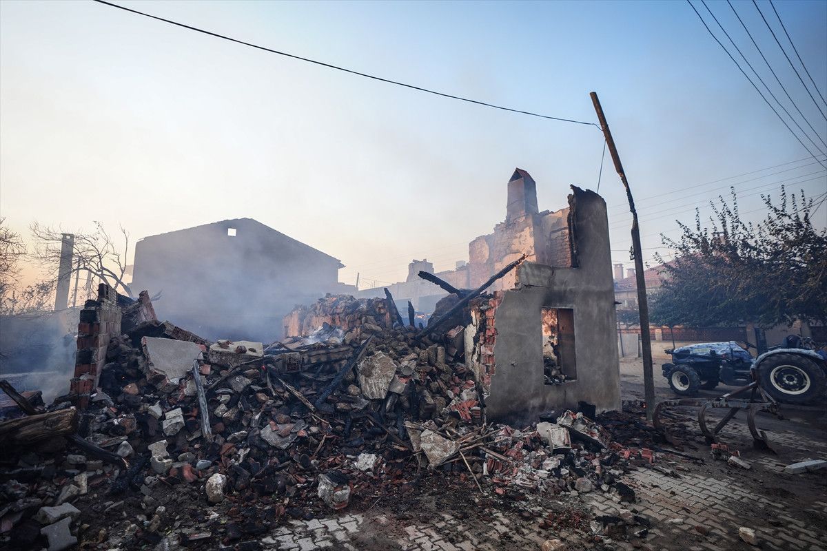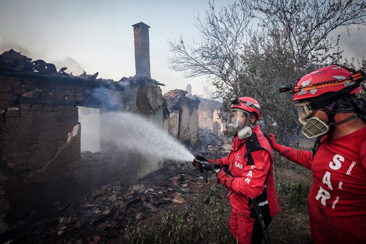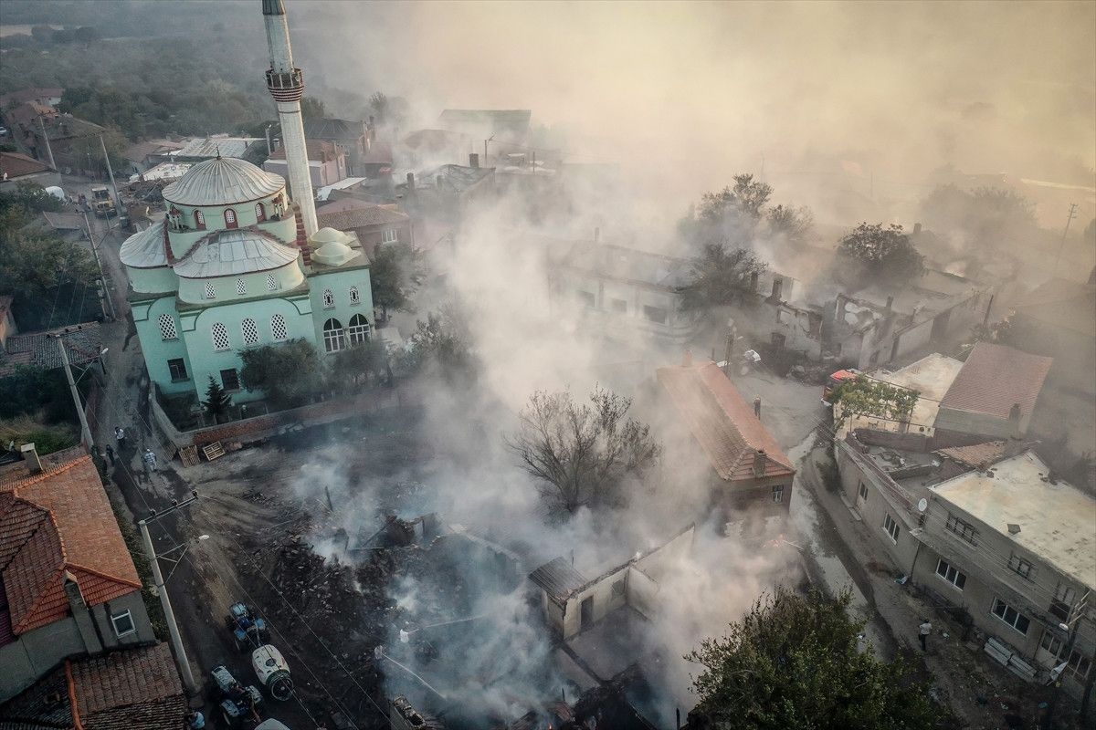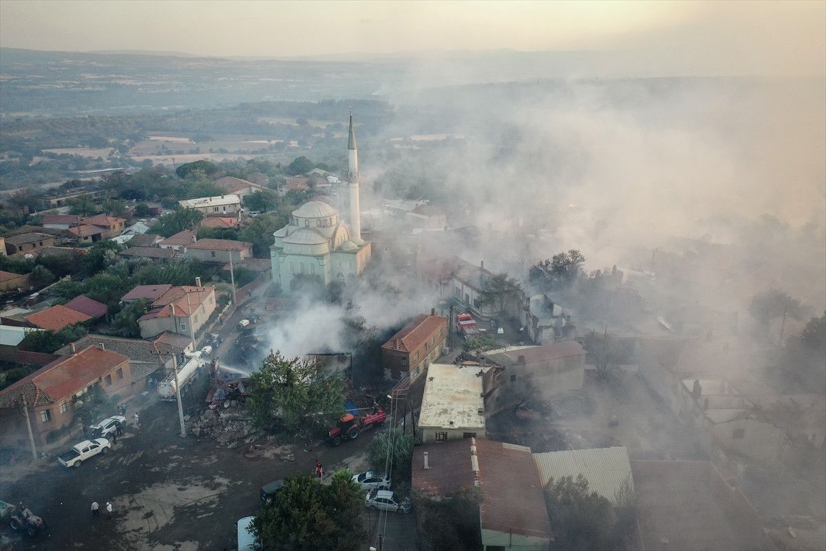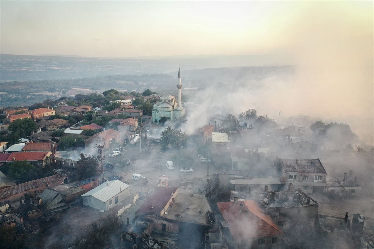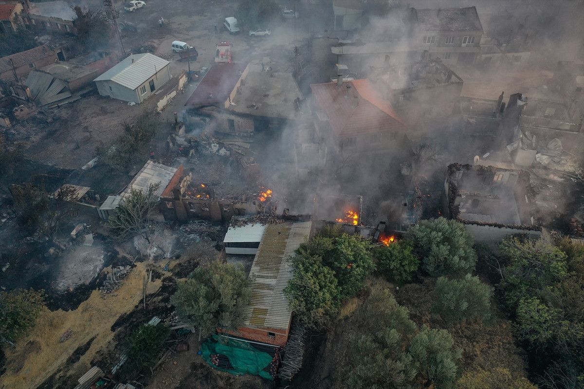 Çanakkale’nin Bayramiç ilçesinde çıkan orman yangını söndürme çalışmaları sürerken, boşaltılan üç köyden gelen görüntüler tahribatın boyutlarını gözler önüne seriyor.
