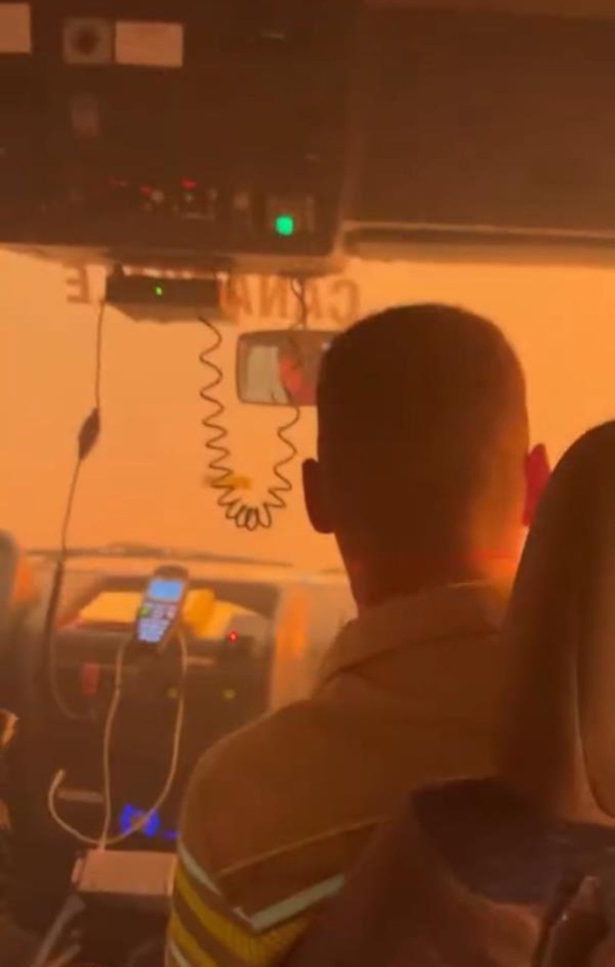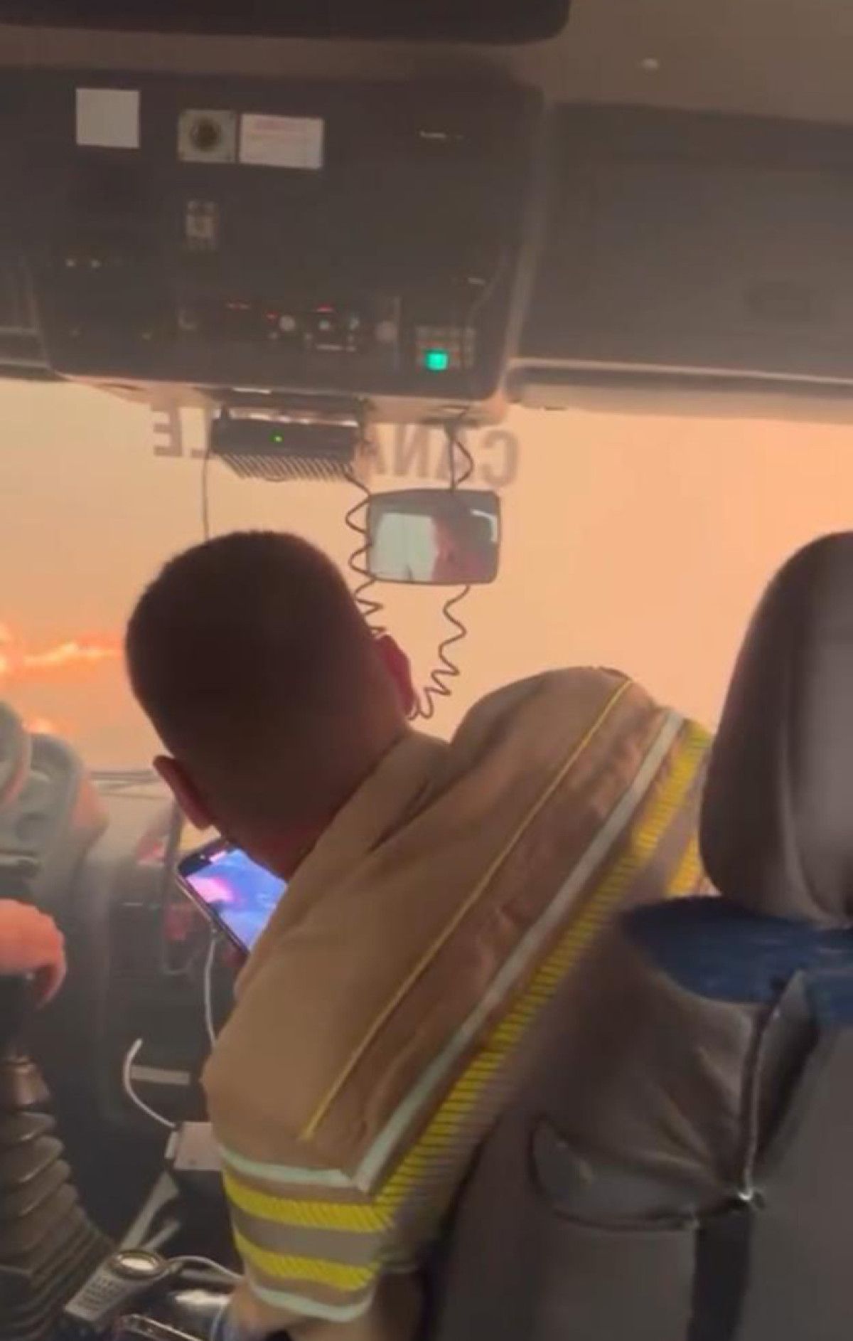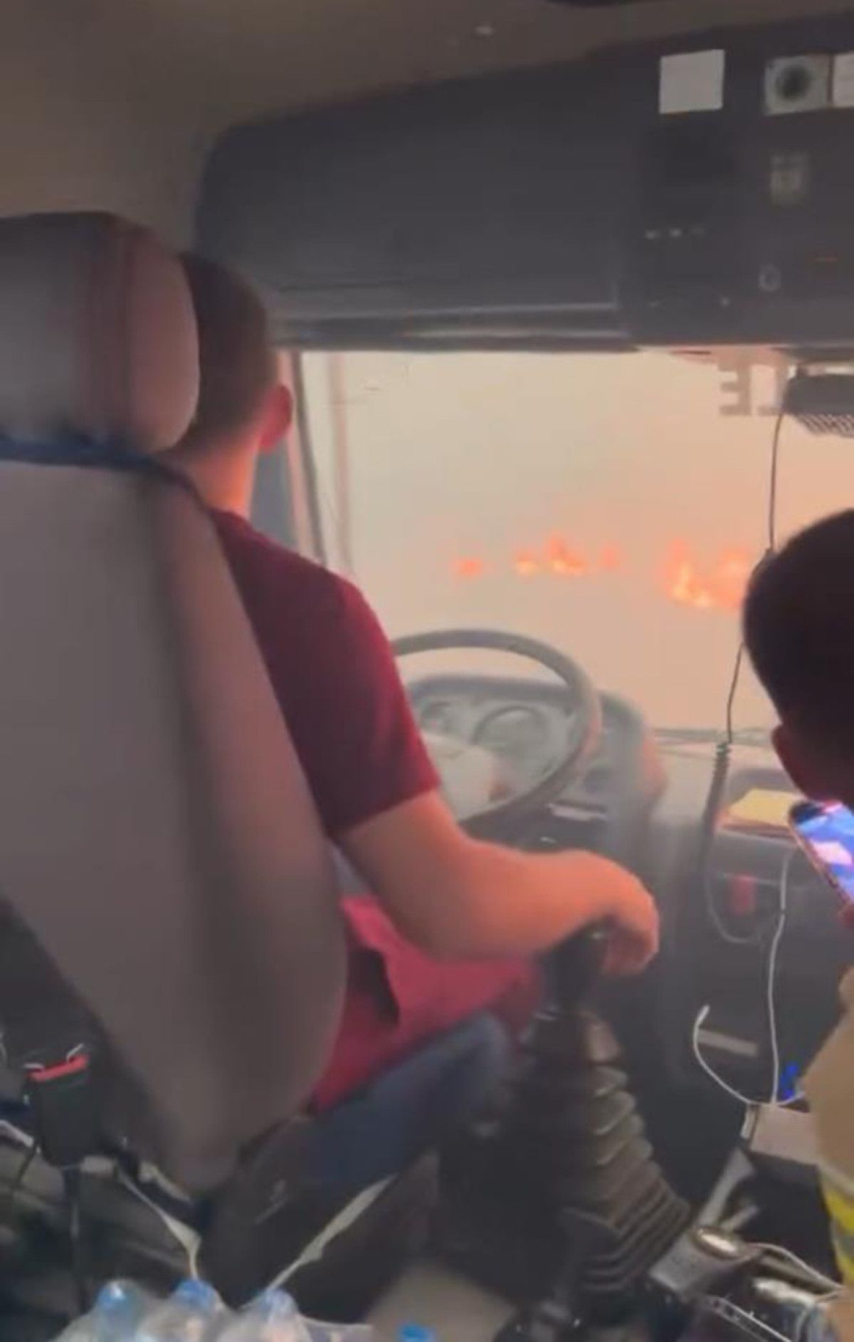 Öte yandan, yangına karadan arazözle müdahale eden Orman Bölge Müdürlüğü ekipleri alevlerin arasında kaldı.