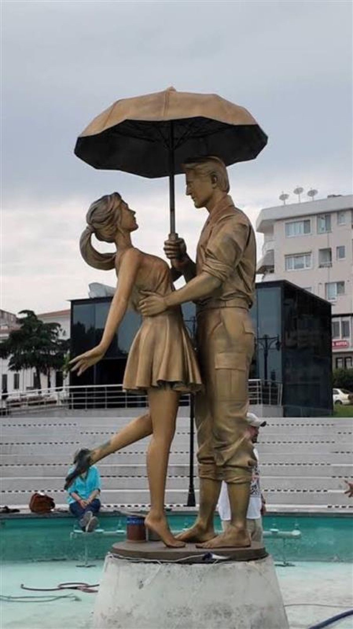 16. yüzyılda Mimar Sinan tarafından yapılan Rüstempaşa Camii’nin önündeki meydanı yenileyen belediye, “İki Sevgili” adlı söz konusu heykeli buraya dikti.
