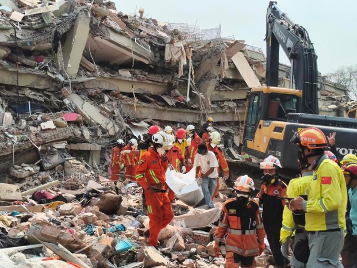 Depremin hemen ardından Çin, Myanmar’a çok sayıda sağlık çalışanı, arama kurtarma görevlisi ve deprem uzmanı gönderdi. Ayrıca Çin Kızılhaç Örgütü, ilk etapta 1.5 milyon yuan (yaklaşık 206 bin dolar) nakit yardımda bulundu.