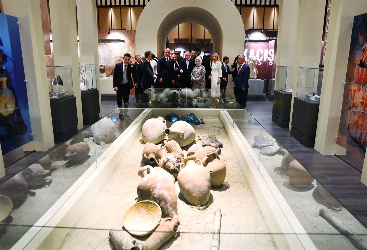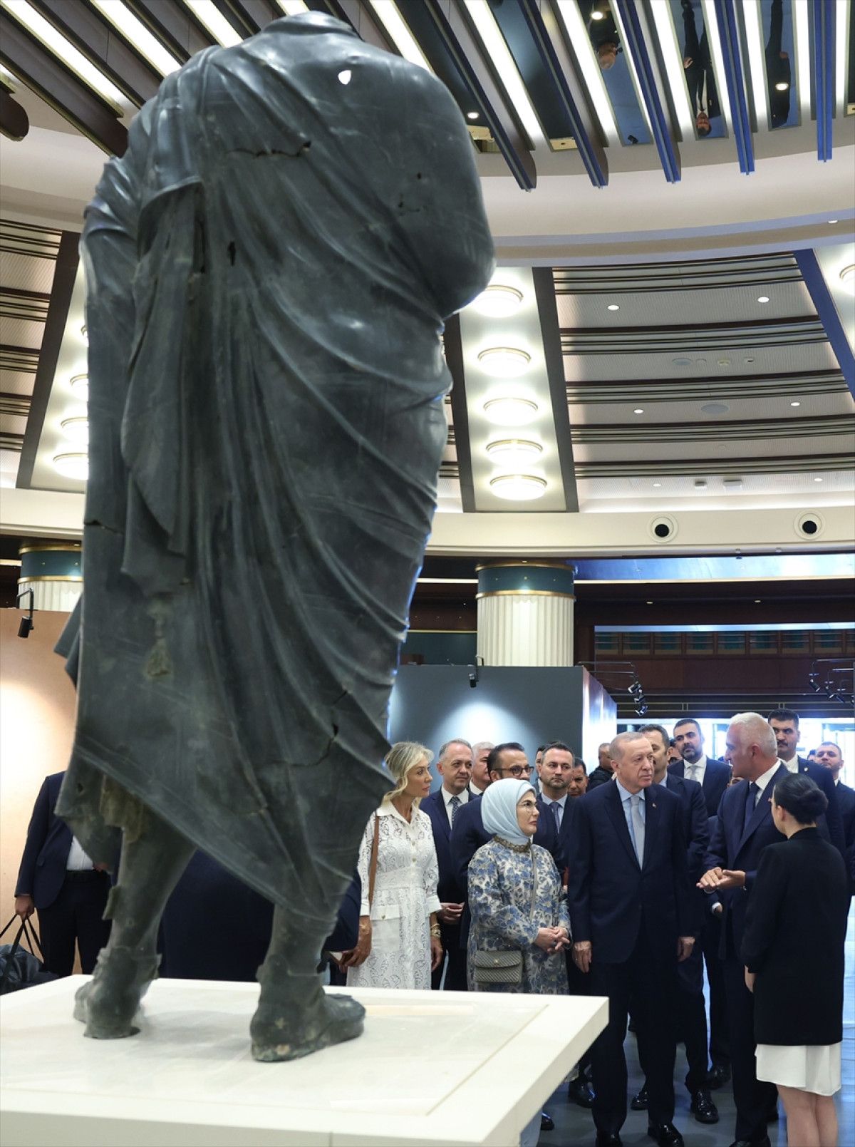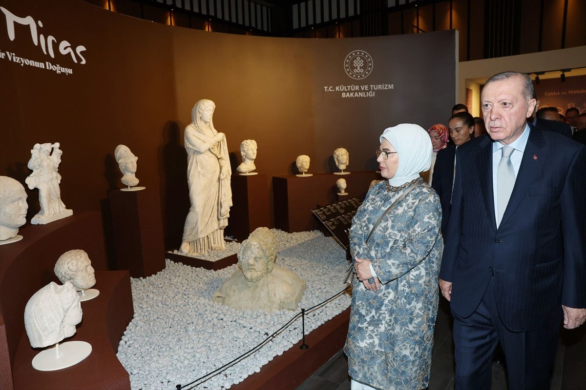 Cumhurbaşkanı Erdoğan’a, eşi Emine Erdoğan, Kültür ve Turizm Bakanı Mehmet Nuri Ersoy ve eşi Pervin Ersoy da eşlik etti.