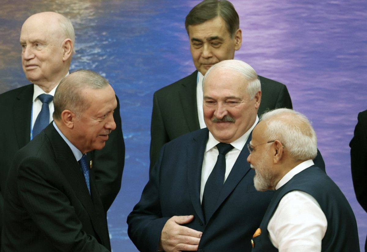 Cumhurbaşkanı Erdoğan, fotoğraf çekimi esnasında Belarus Cumhurbaşkanı Aleksandr Lukaşenko ve Hindistan Başbakanı Narendra Modi ile tokalaştı ve sohbet etti.