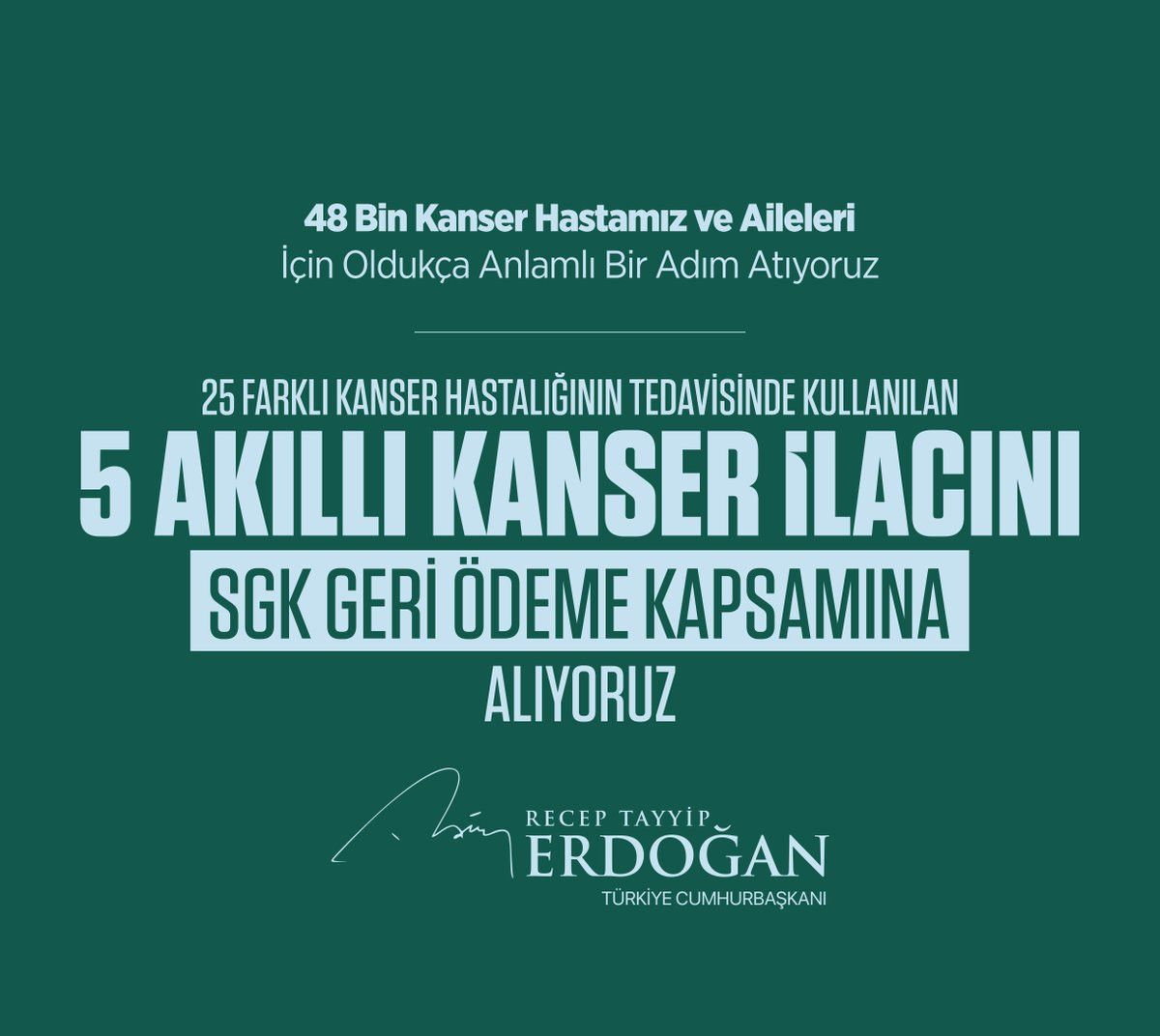 Cumhurbaşkanımız Sayın Erdoğan’ın Cumhurbaşkanlığı Kabine Toplantımızın ardından açıkladığı müjdeyle kanserle mücadele eden vatandaşlarımıza önemli bir destek sağlayacağız.