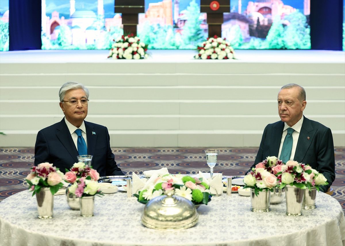Cumhurbaşkanı Recep Tayyip Erdoğan, Cumhurbaşkanlığı Külliyesi Beştepe Millet Sergi Salonu’nda Kazakistan Cumhurbaşkanı Kasım Cömert Tokayev’in onuruna yemek verdi.