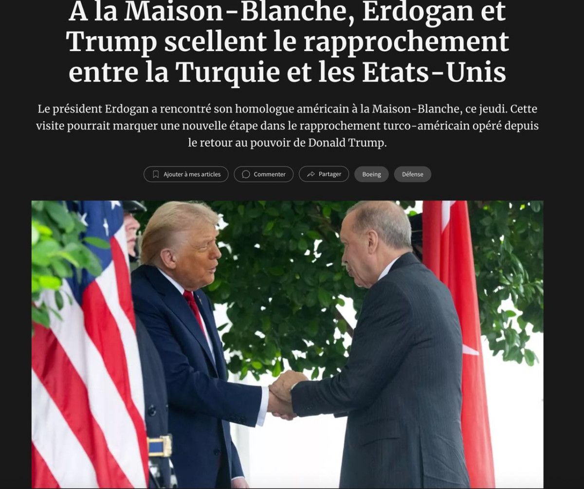 Fransız basınından Les Echos, “Erdoğan ve Trump, Beyaz Saray’da Türkiye ile ABD arasındaki yakınlaşmayı perçinledi” başlığını kullandı.
