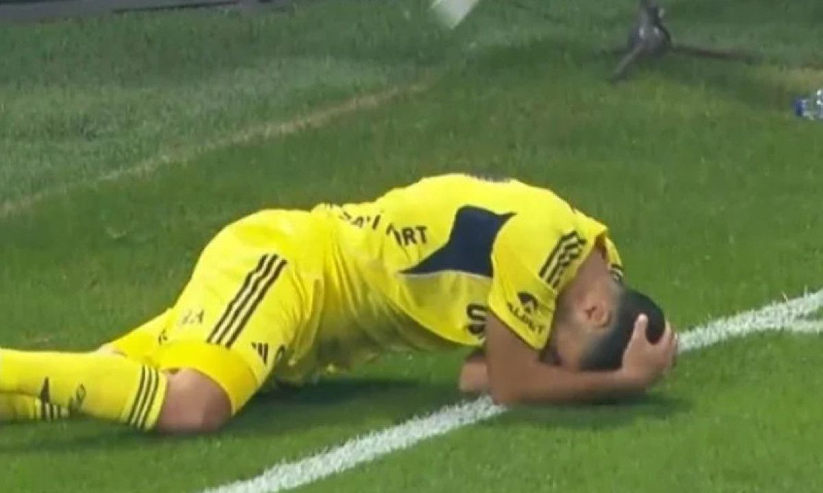 Fenerbahçe forması giyen Marco Asensio, Beşiktaş derbisinde gelen yabancı maddelerin ardından yerde kaldı.