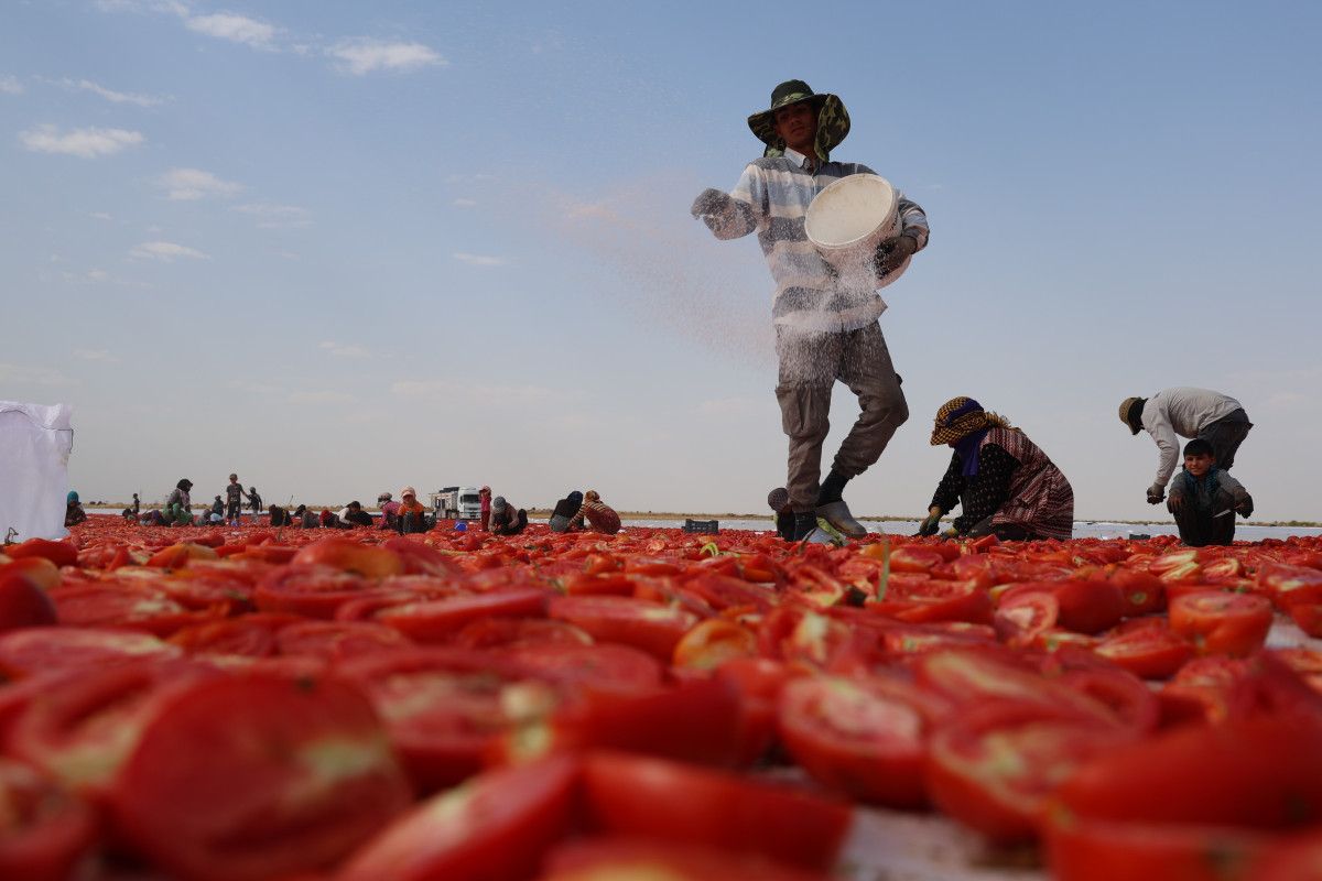 Kentte 40 derece üzeri kavurucu sıcakta yapılan bu işlemin ardından toplanan domatesler, işlendikten sonra İtalya, Fransa ve İngiltere gibi Avrupa’nın birçok ülkesine ihraç edilip meze ve pizza sosu olarak kullanılıyor.