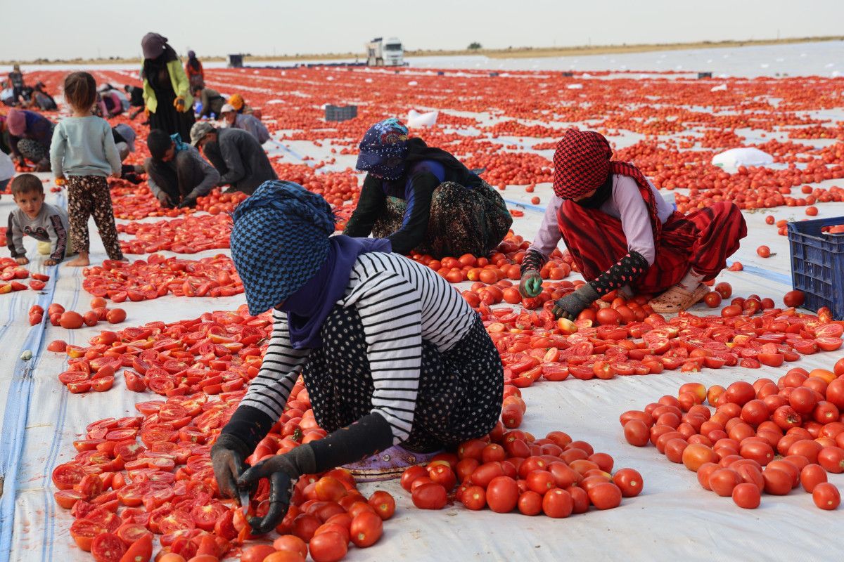 Diyarbakır’ın Çınar ilçesinde yetiştirilen domateslerin kurutma işlemi sürüyor.